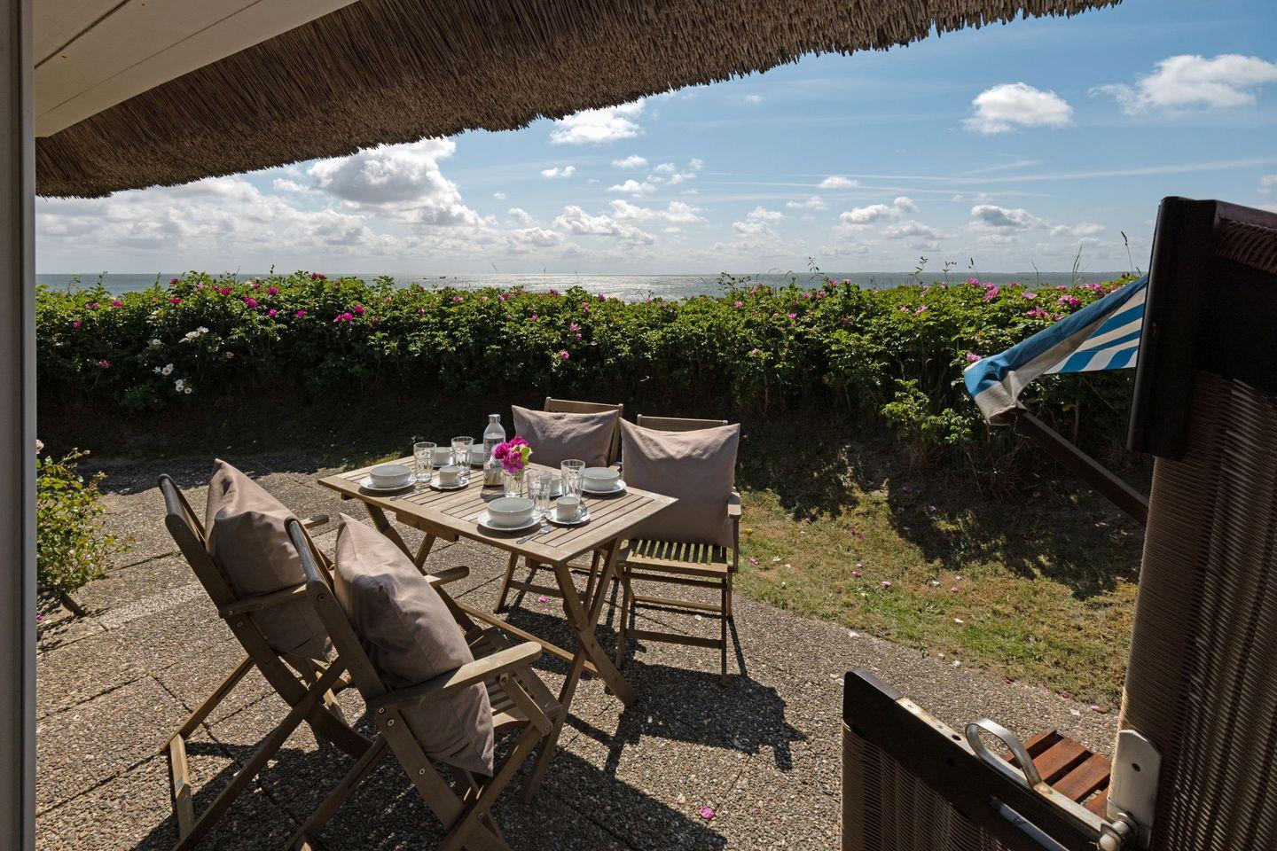 Schönes Feriendoppelhaus unter Reet mit Garten und wunderschönen Meerblick für bis zu drei Personen.