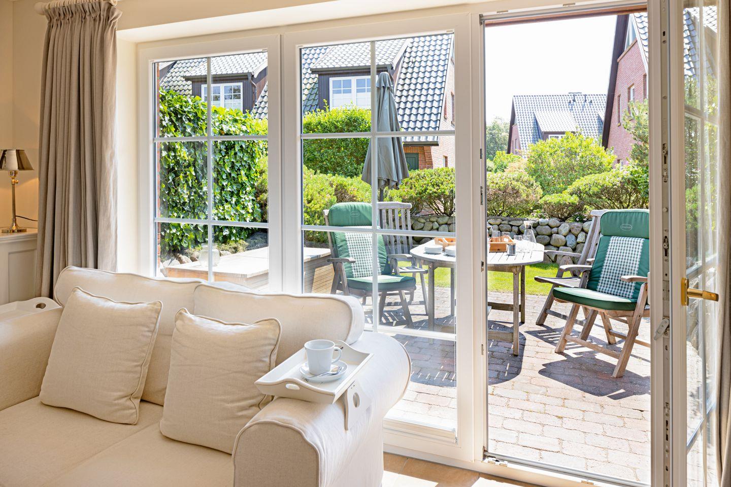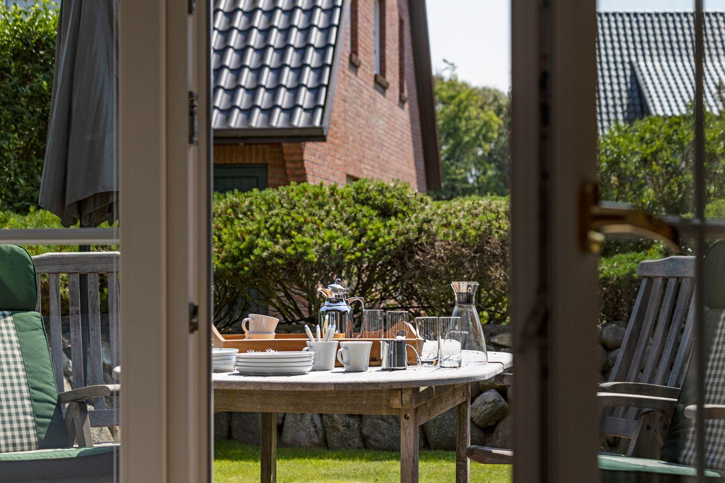 Die großzügige Terrasse ist ein idealer Ort, um den Tag bei einem Glas Wein und herrlichem Gartenblick ausklingen zu lassen.