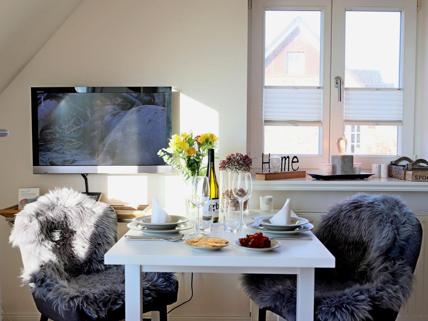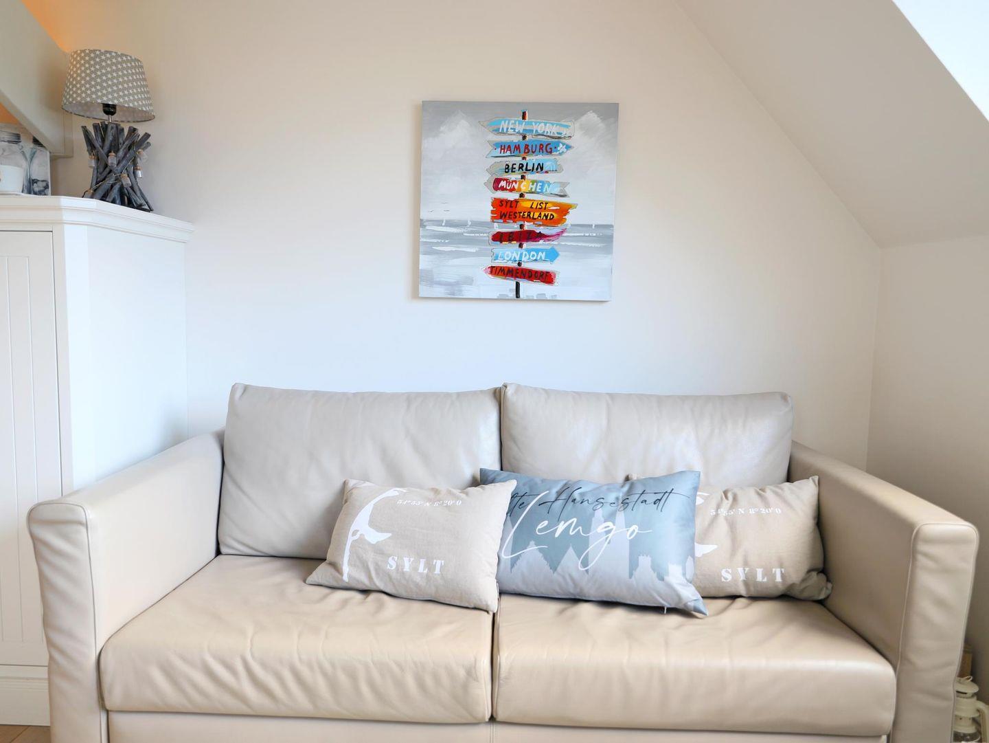 Genießen Sie Ihren Aufenthalt in dieser exklusiven 41 m² großen Dachgeschosswohnung im Herzen von List. Die geschmackvoll eingerichtete Wohnung bietet Platz für 2 Personen und besticht mit hochwertigem Wohnkomfort und einem sonnigen Süd-West-Balkon mit Blick auf das Wattenmeer, das nur 50 m entfernt ist. Der Wohnbereich verfügt über einen Flatscreen-Sat-TV, während das gemütliche Schlafzimmer mit einem Doppelbett (160 x 200 cm) ausgestattet ist. Das großzügige Duschbad sorgt für zusätzlichen Komfort. Ein eigener Eingang mit separatem Treppenhaus bietet Privatsphäre. Im Haus stehen eine Waschmaschine und ein Trockner mit Münzzähler bereit. Fahrradständer befinden sich am Haus, jedoch ohne garantierten Stellplatz. Einkaufsmöglichkeiten, Restaurants und das Erlebniszentrum Naturgewalten sind bequem erreichbar. Der nahegelegene Lister Hafen bietet abwechslungsreiche Freizeitmöglichkeiten. Haustiere sind nicht gestattet.