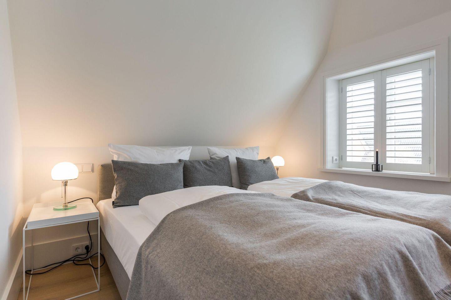 Die drei Schlafzimmer bieten Platz für bis zu 6 Personen und sind stilvoll und komfortabel eingerichtet. Zwei der Schlafzimmer sind mit luxuriösen Boxspring-Doppelbetten (180x210 cm), Einbauschränken und einem TV ausgestattet – ideal für erholsame Nächte. Das dritte Schlafzimmer verfügt über ein Einzelbett (90x200 cm) sowie ein ausziehbares Bett, das ebenfalls als Couch genutzt werden kann. Hier finden auch Kinder oder zusätzliche Gäste einen komfortablen Schlafplatz.