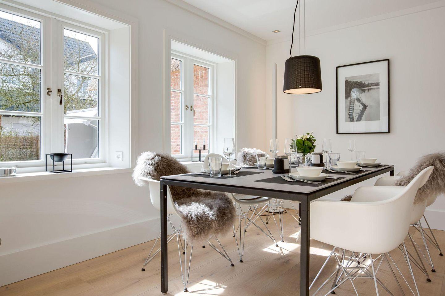 Das großzügige Wohnzimmer besticht durch nordisches Design und hochwertigen Komfort. Ein gemütlicher Kamin sorgt für wohlige Wärme an kühleren Abenden, während die großen Fensterfronten viel Licht hereinlassen und Ihnen direkten Zugang zum weitläufigen Garten und zu den beiden Terrassen bieten. Hier können Sie sich nach einem Tag am Strand entspannen, die Sonne genießen oder den Abend bei einem Glas Wein ausklingen lassen.
