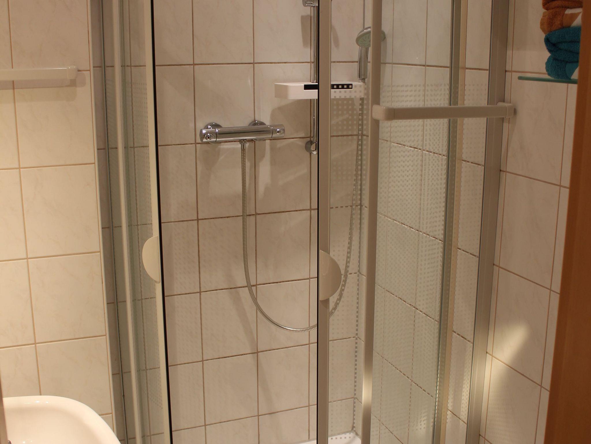 sich im Eingangsbereich. Im separaten Bad finden Sie eine Dusche, WC,