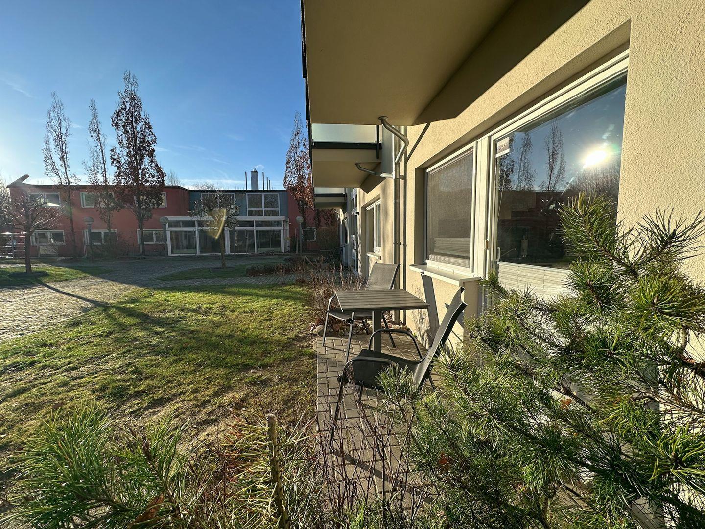 Die Ferienwohnung befindet sich der strandnahe Appartementanlage Eldena im Fischerörtchen Lobbe.