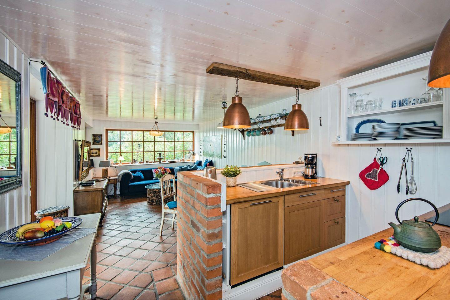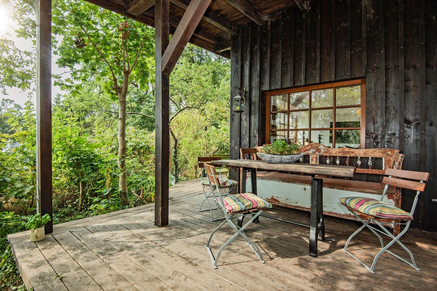Ideal für Familien! Südexponiert mit Blick auf den Kölpinsee liegt verborgen und phantasieumwoben ein ganz eigenes Ferienhaus. Im Herzen wärmt ein Lehmofen, dessen Feuer den kältesten Oststürmen trotzt. Es gibt die Wahl: Einschlafen unter dem Wagenhimmel oder Aufwachen mit Blick auf den See. Eine Wohltat bei Hitze oder Sommerregen: eine große überdachte Holzterrasse mit mehreren Sitznischen.