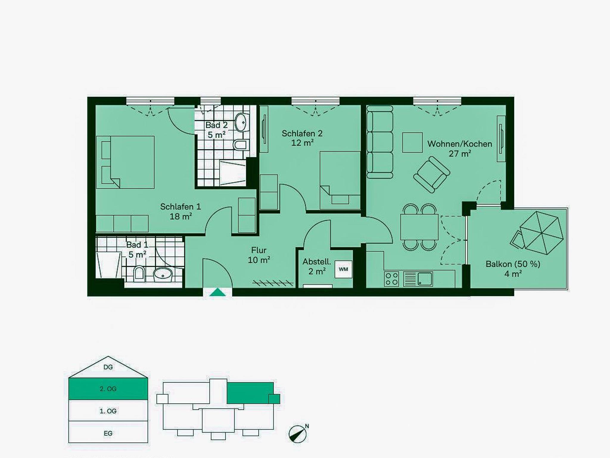 Ein besonderes Highlight ist der große, überdachte Balkon in Nordost-Ausrichtung mit Blickrichtung Meer - perfekt, um mit Weitblick den Tag bei einem sonnigen Frühstück zu beginnen oder die frische Meeresbrise am Nachmittag zu genießen.
