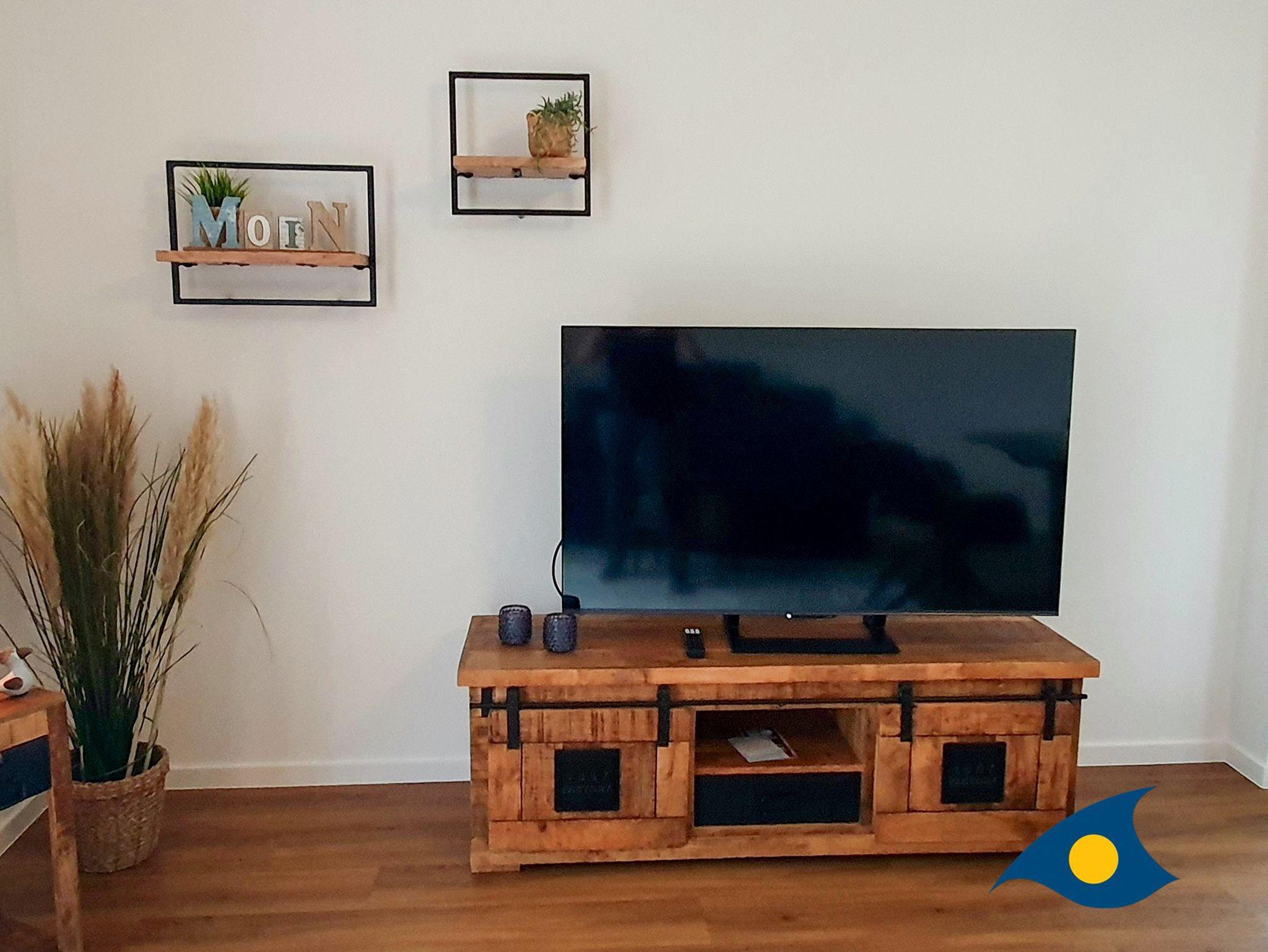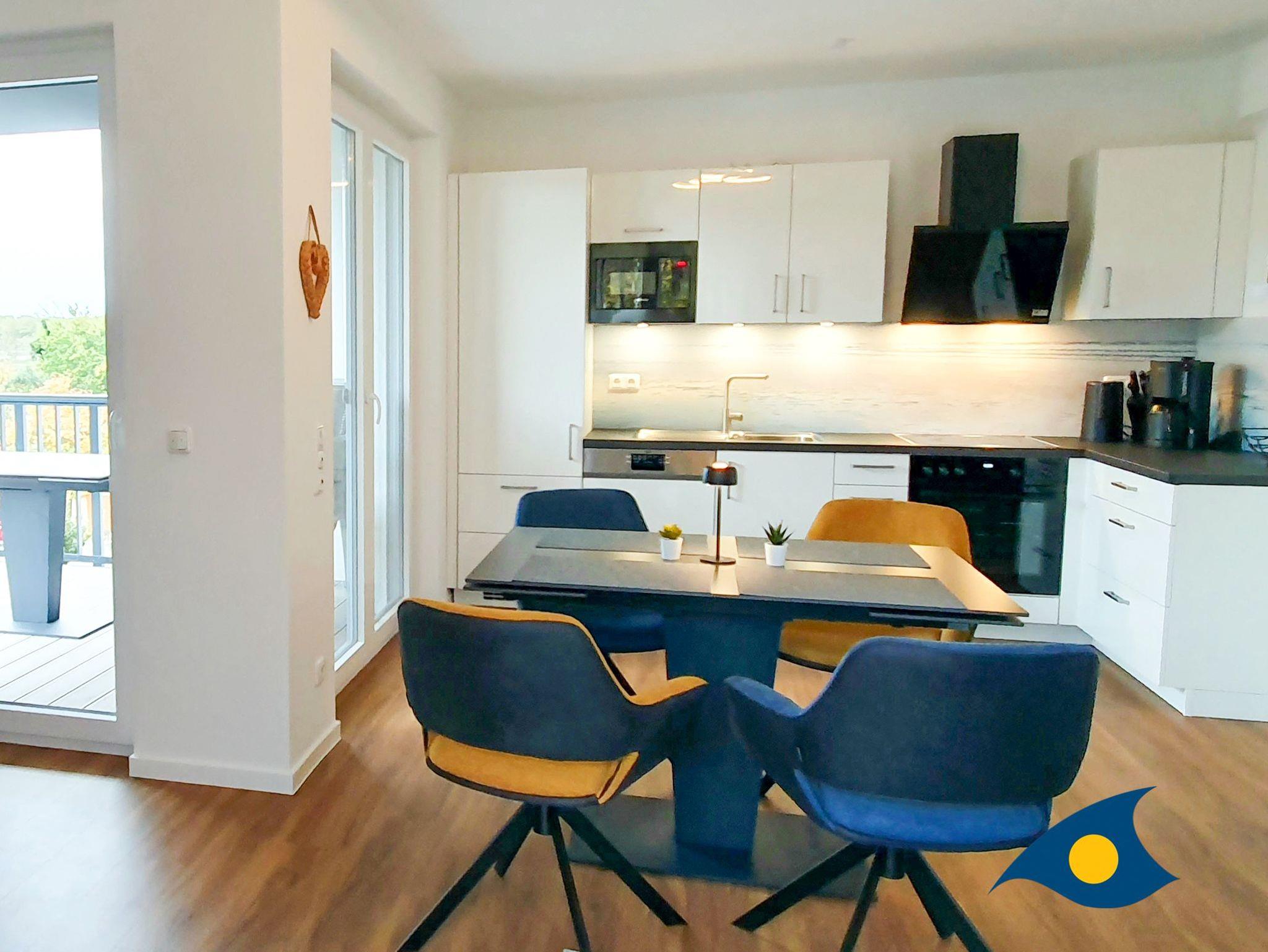Der offene Wohnbereich mit bequemer Couch (Schlaffunktion für eine fünfte Person), Smart-TV und Essplatz lädt zu entspannten Stunden ein. In der voll ausgestatteten Küche mit Induktionskochfeld, Backofen, Geschirrspüler, Kaffeemaschine, Mikrowelle und allen wichtigen Küchenutensilien finden Hobbyköche alles, was sie brauchen.