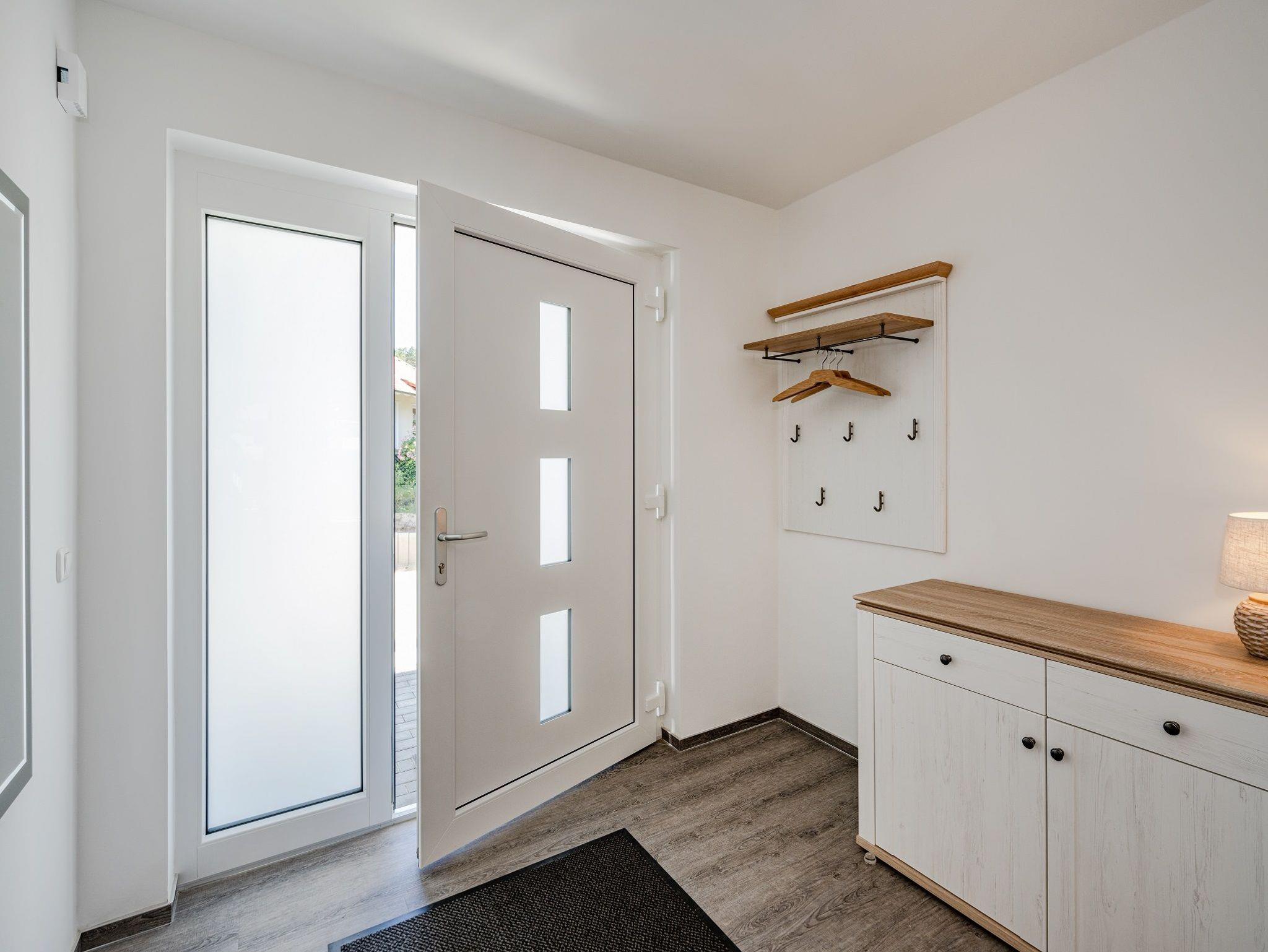 Herzlich willkommen in unserem modernen Ferienhaus (Reihenhaus) in Kölpinsee, 2022 neu erbaut, das Platz für bis zu 4 Personen bietet. Über 94 m2 erwarten Sie eine durchdachte Raumgestaltung und eine stilvolle Inneneinrichtung. Zwei Schlafzimmer, zwei Bäder, ein heller Wohnraum mit offener Küche sowie eine Sonnenterrasse mit Garten laden zum Wohlfühlen ein.
