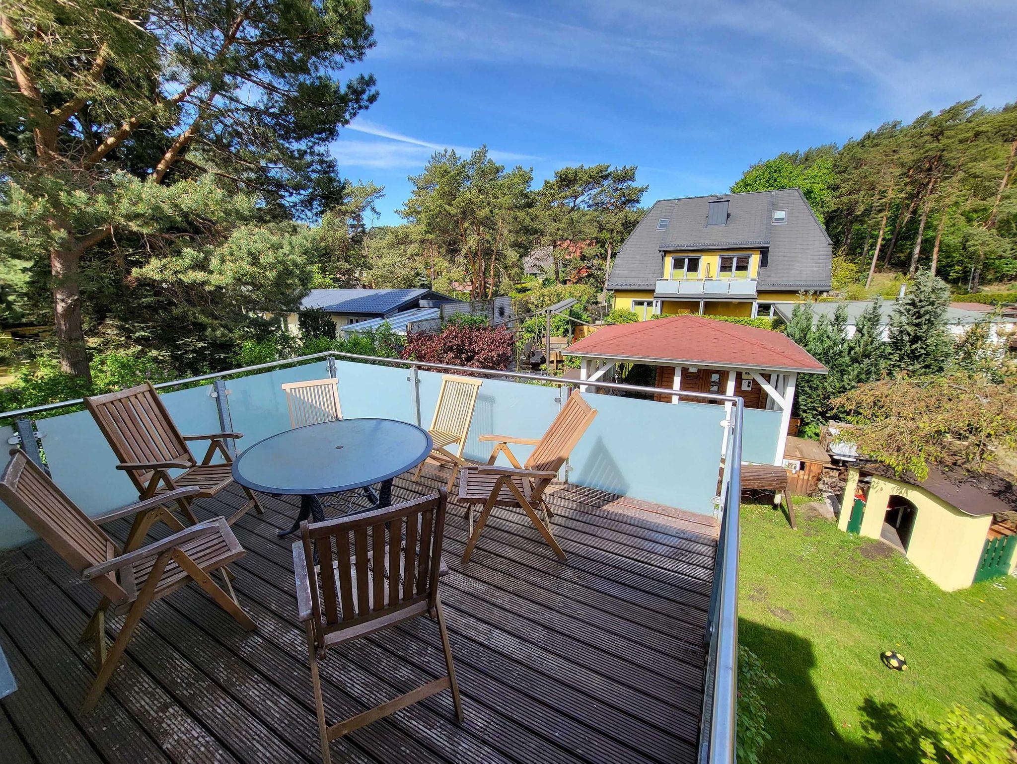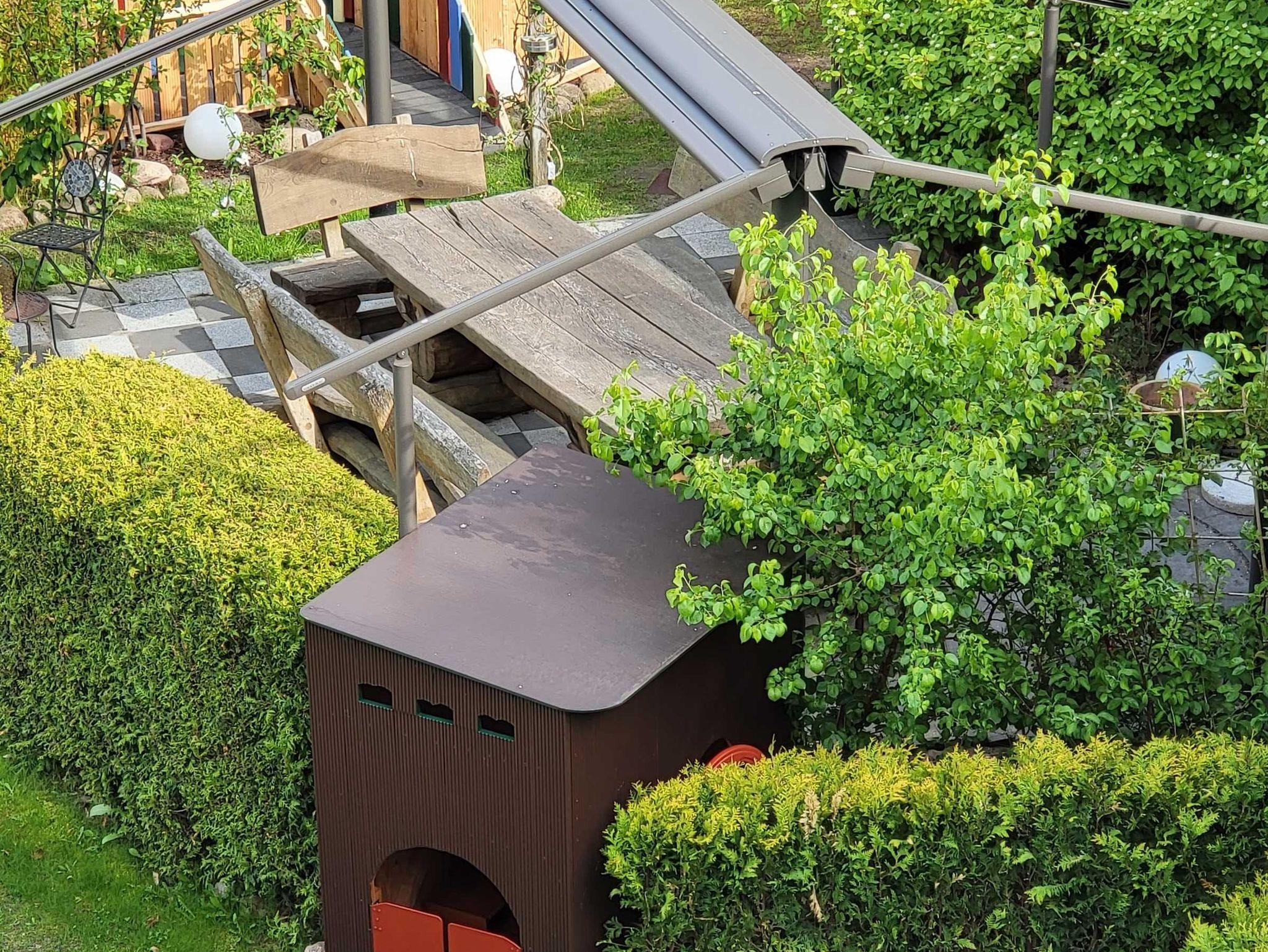 Alle Gäste sind eingeladen, den gesamten Gartenbereich (siehe Fotos) sowie den Grillplatz (großer Steingrill mit Kamin) zum Zusammensitzen, zum Frühstücken und Verweilen zu nutzen. Deshalb haben wir den Gartenbereich so gestaltet, dass die Tafel und der Grillplatz in der Mitte unserer beiden Ferienhäuser STERN USEDOM (Ferienhaus von der Strandstr. 29 und Ferienhaus vom Triftweg 10) liegen. Diesen Platz haben wir Ende Juni 2017 deutlich vergrößert, damit dort eine große Sitzgruppe aus deutscher Eiche (Der Tisch hat ein Gewicht von ca. 600 kg. Je eine lange Bank hat ein Gewicht von ca. 300 kg.) Platz findet. So können hier um die 16 Personen Platz finden. Hier haben wir einen Mittelpunkt geschaffen, wo sich Menschen kennenlernen und treffen können. Wer gerne für sich sein möchte, dem stehen die großzügigen Terrassen und Balkone der jeweiligen Wohnung zur Verfügung.