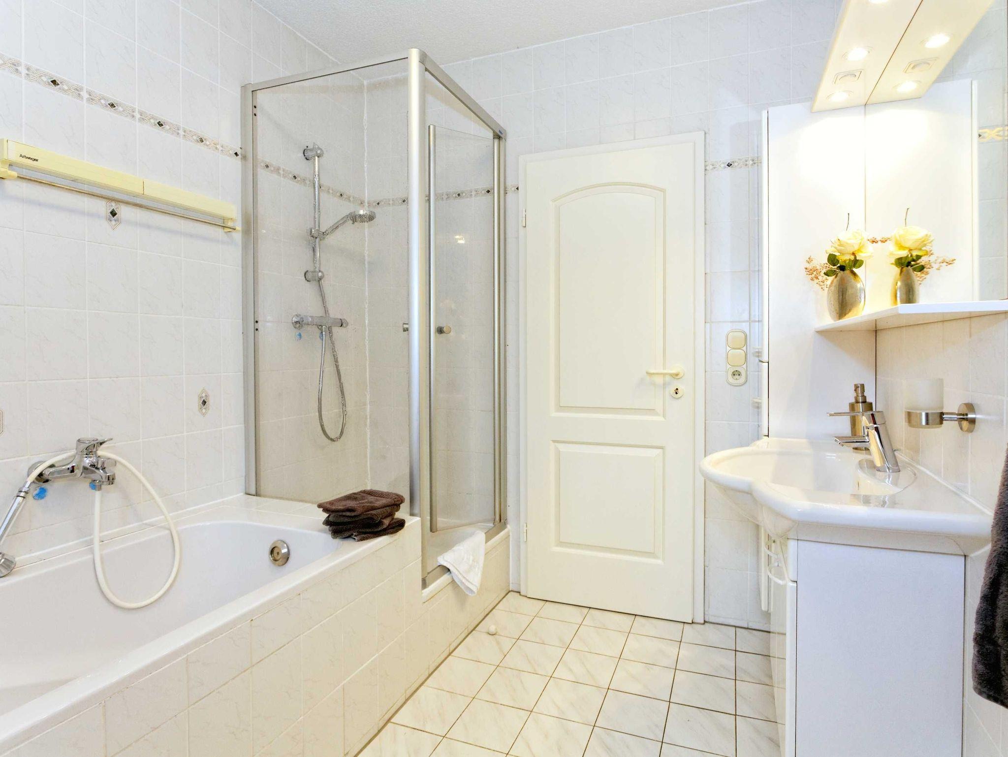 Abgeschlossene, geräumige Ferienwohnung in der 1. Etage eines Einfamilienhauses. Die Wohnung hat ein Wohnzimmer mit Balkon, kostenlose WLAN, TV, Radio, 1 Schlafzimmer mit Doppelbett, Bad mit Badewanne, Dusche und WC, Küche mit Balkon, Geschirrspüler Backofen und Ceranfeld, Mikrowelle, Toaster, Wasserkocher, Parkplatz am Haus. Handtücher und Bettwäsche sind inklusive.