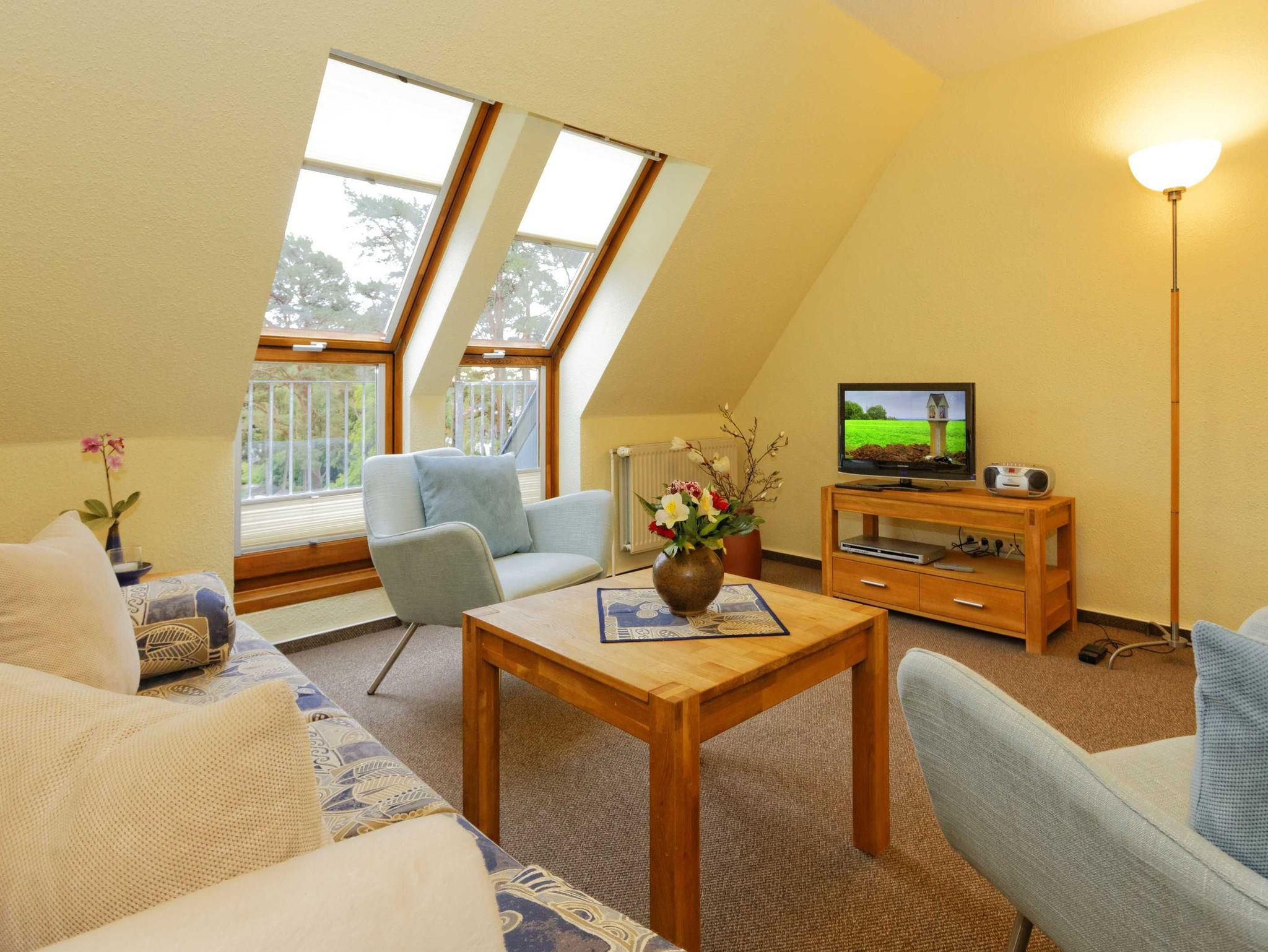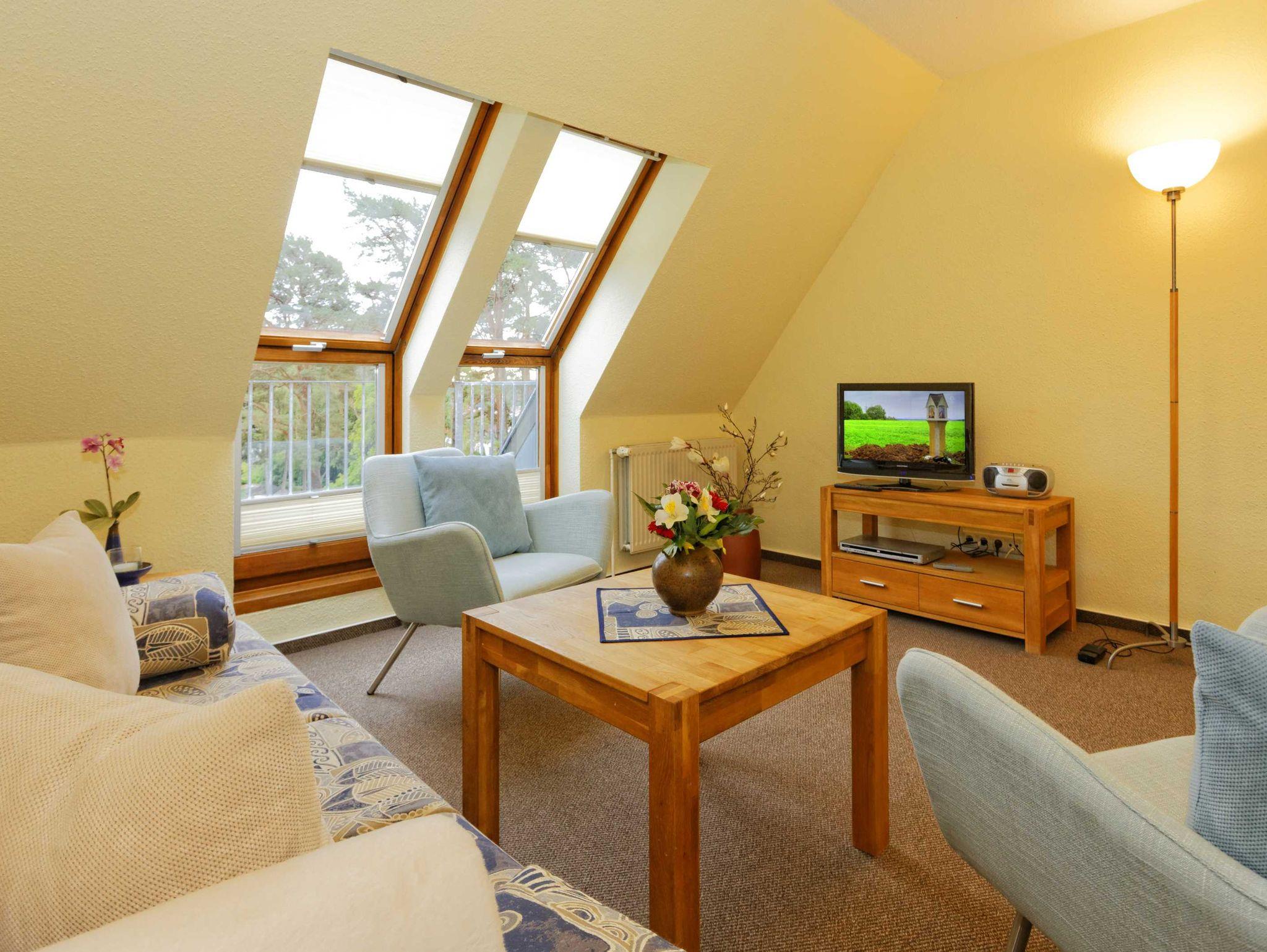Genießen Sie Ihren Kaffee auf dem sonnigen Balkon mit Waldblick, kochen Sie in der voll ausgestatteten Küche und entspannen Sie in dem gemütlichen Wohnbereich. Ein separates Schlafzimmer und ein Bad mit Badewanne und Dusche bieten erholsame Ruhe. Mit kostenlosem WLAN und einem Parkplatz direkt am Haus beginnt Ihr perfekter Urlaub zwischen Wald und Meer.