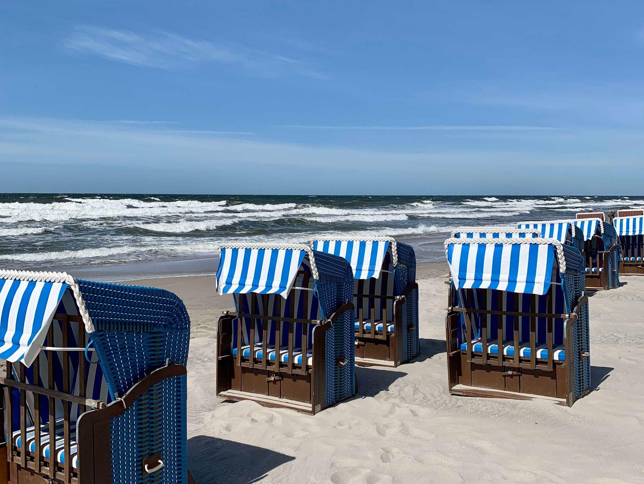 Ein persönlicher Strandkorb am Strand ist für sie reserviert und kostenlos nutzbar.