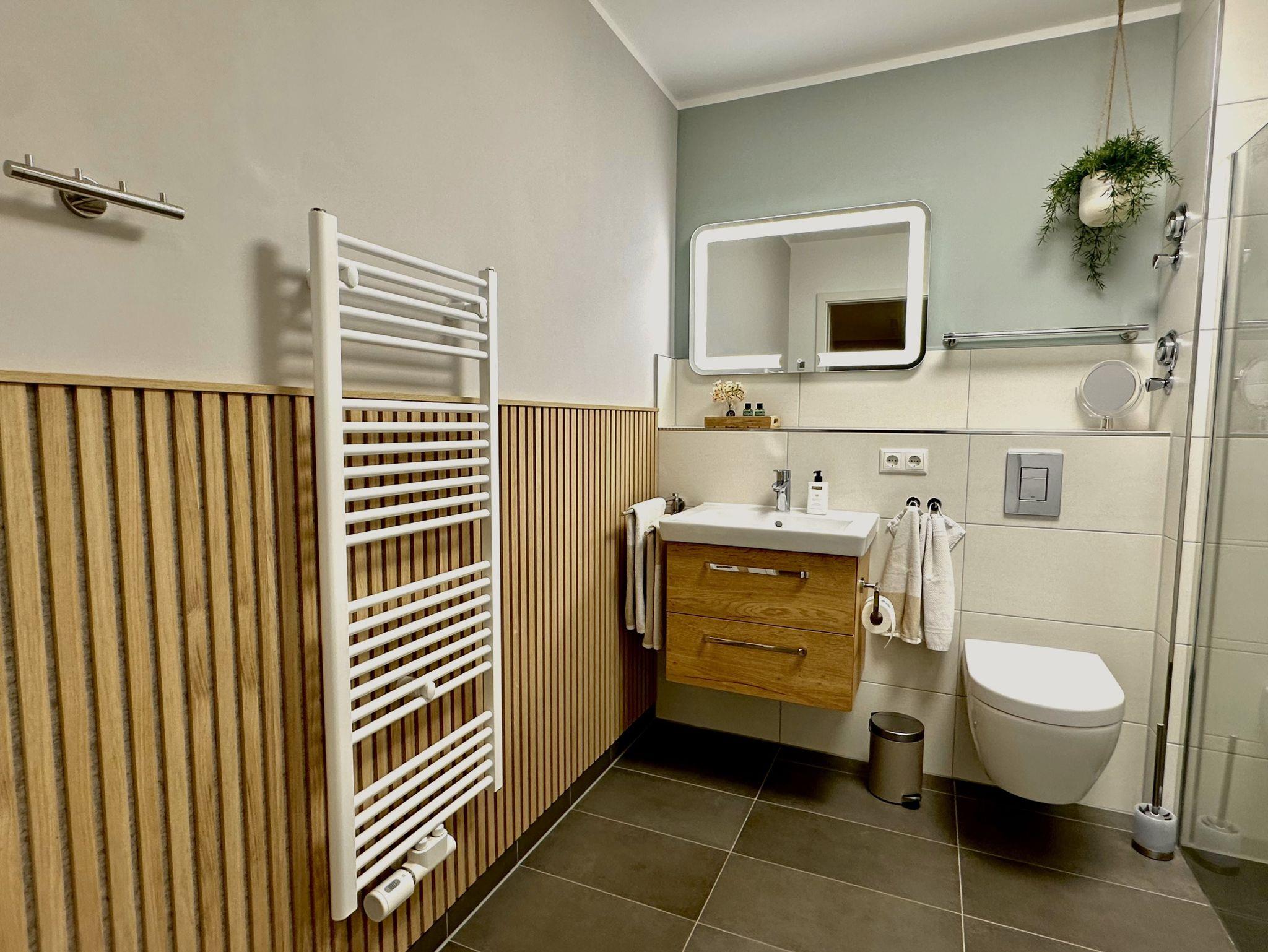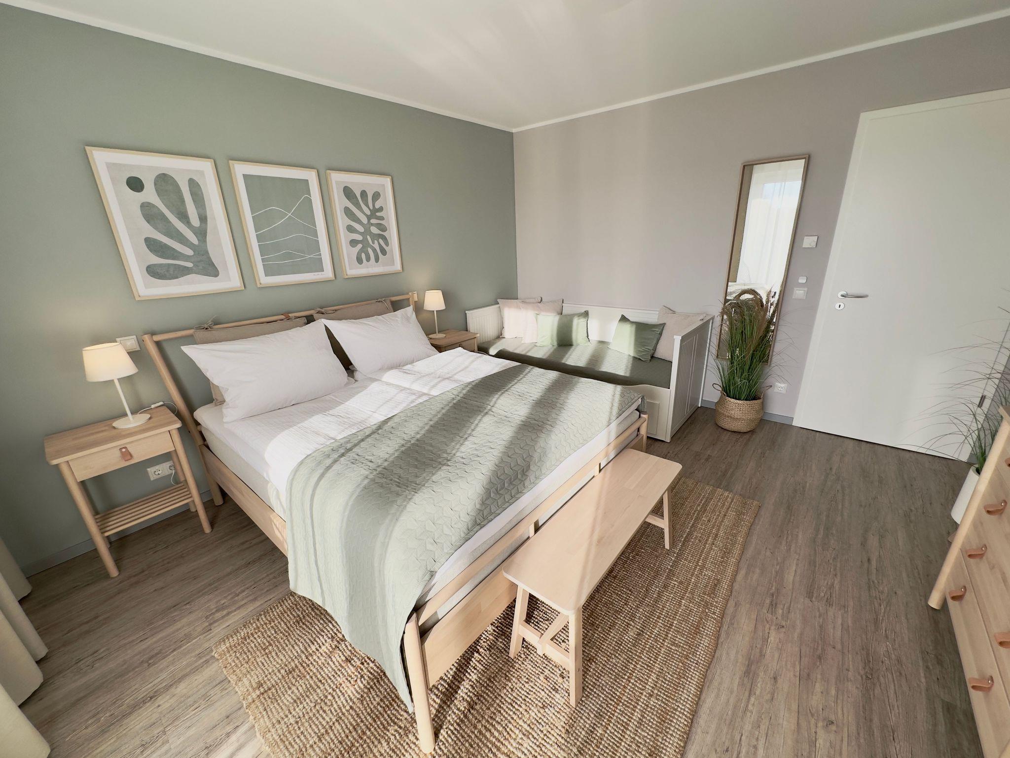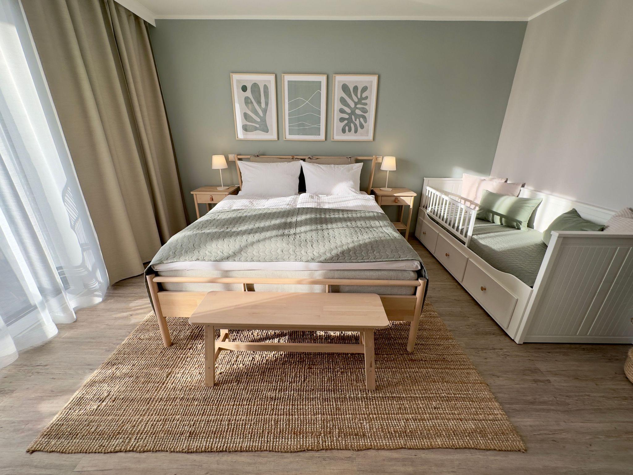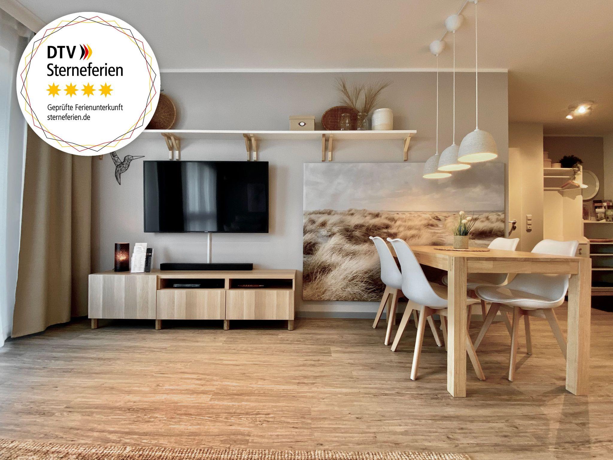 Im Apartment Strandzeit erwartet Sie im Erdgeschoss eine 63 m² große, moderne und gemütliche 2-Zimmer Ferienwohnung mit Süd-Ost-Ausrichtung, welche 2022 neu erbaut wurde.