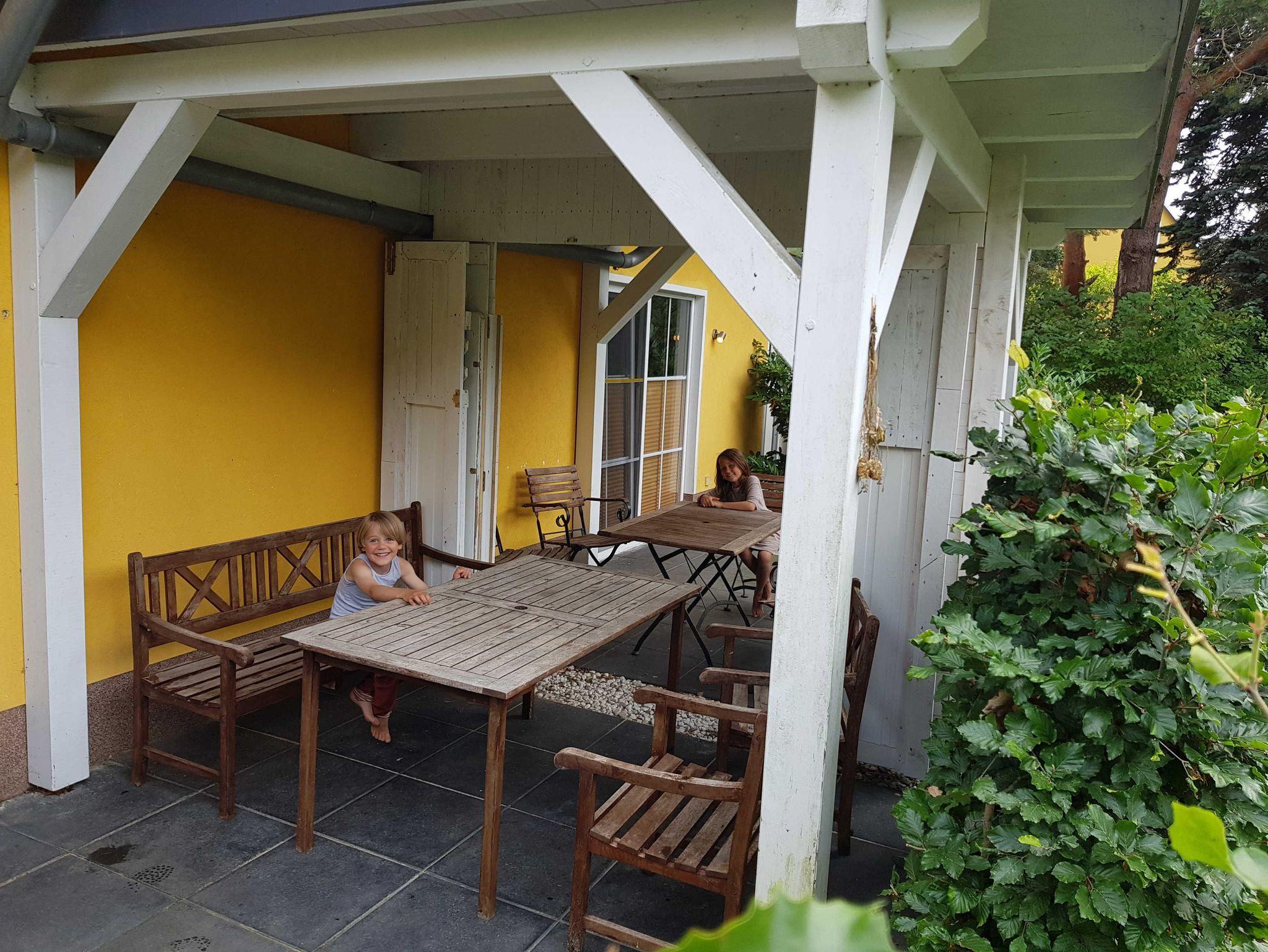 • Die Terrassenabtrennung der beiden Erdgeschosswohnungen Fewo 1 und Fewo 2 wurde komplett neu gebaut mit der Möglichkeit zum Öffnen, wenn die Gäste der nebenanliegenden Ferienwohnung dies ebenfalls wünschen und somit eine gemeinsame Terrasse nutzen möchten. Für Familien oder Freunde, die gerne zusammen reisen und die beiden Erdgeschosswohnungen FEWO 1 und FEWO 2 zusammen mieten.
