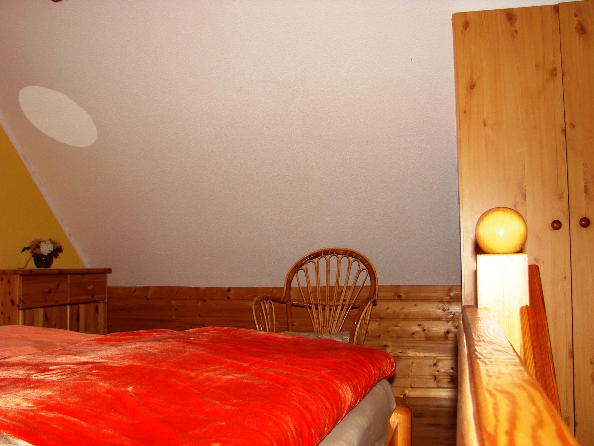 Das liebevoll eingerichtete Fachwerkhaus bietet Ihnen im Erdgeschoss einen offenen Wohn- und Küchenbereich mit Flat-TV, CD-Player & Radio. Die Küche ist mit einem Kühlschrank, Cerankochfeld, Backofen, Kaffeemaschine und einer Mikrowelle ausgestattet. Das Bad verfügt über Dusche/WC und einen Fön. Im Obergeschoss finden Sie auf der Galerie ein Doppelbett, sowie ein weiteres separates Schlafzimmer mit einem Einzelbett. und einem zusätzlichen Fernseher. Auf der großzügigen Sonnenterrasse mit Gartenpavillon und schönem Blick in den Garten & Wald stehen Ihnen Gartenmöbel und ein Grill zur Verfügung.