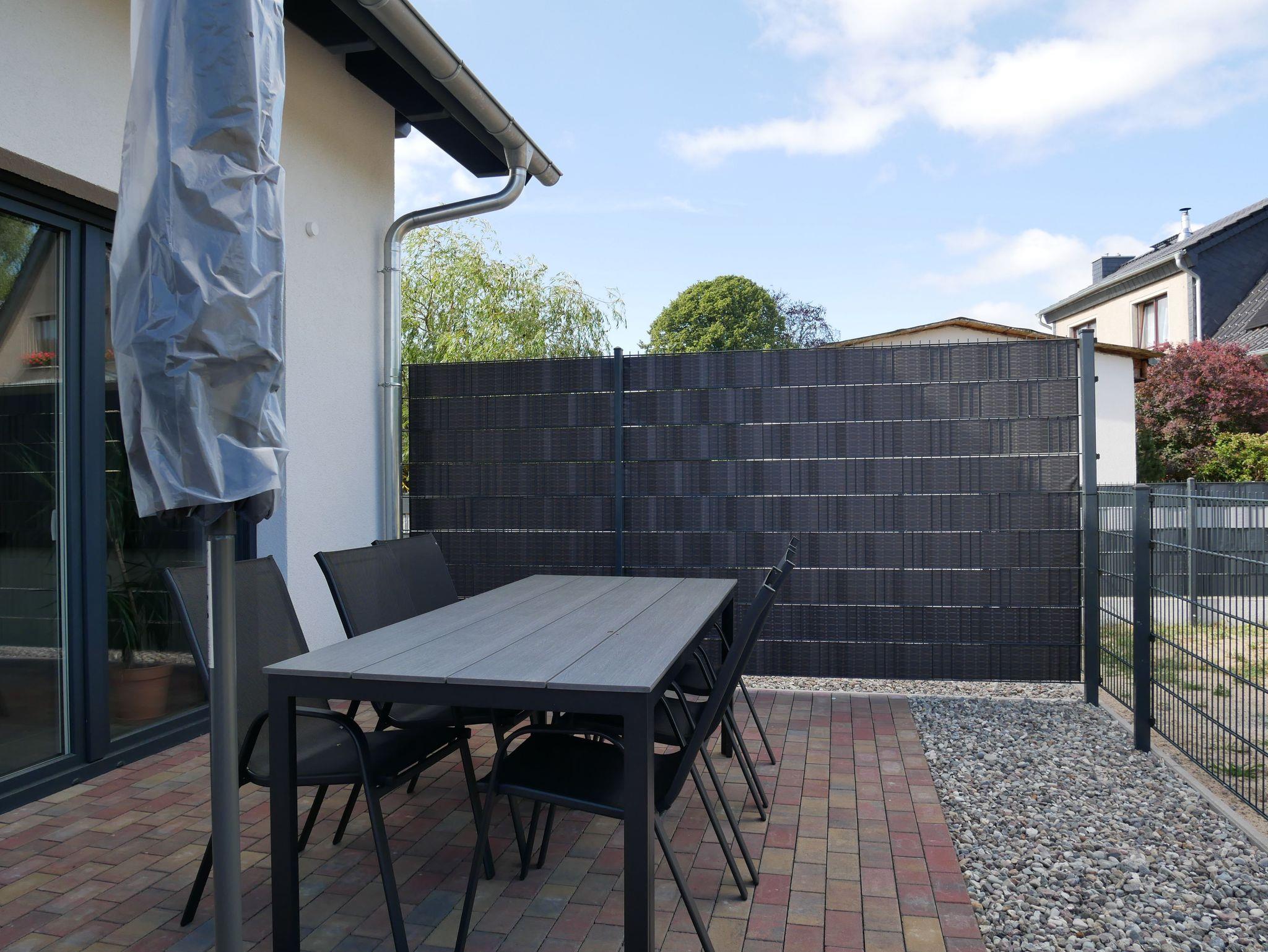 Besonderes Highlight ist die voll eingezäunte Terrasse, die mit Gartenmöbeln und einem Sonnenschirm ausgestattet ist ? perfekt für entspannte Stunden an der frischen Luft.