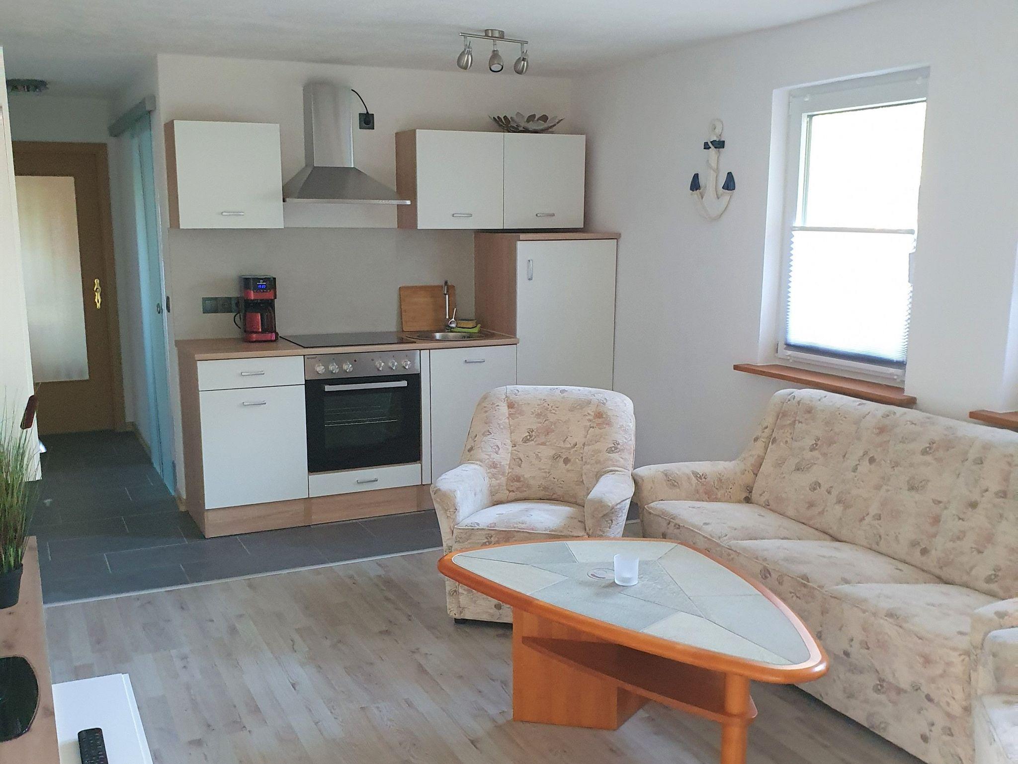 Über die kleine Terrasse gelangen Sie in den Wohnraum mit Couch, welche auch für eine Aufbettung genutzt werden kann. Hier finden Sie ebenso eine offene gut ausgestattete Küchenzeile. Über den kleinen Flur gelangen Sie in das Bad mit Dusche und WC sowie zum gemütlichen Schlafzimmer mit Doppelbett. Die Erstaustattung Bettwäsche ist inklusive, Handtücher bringen Sie sich bitte selbst mit.