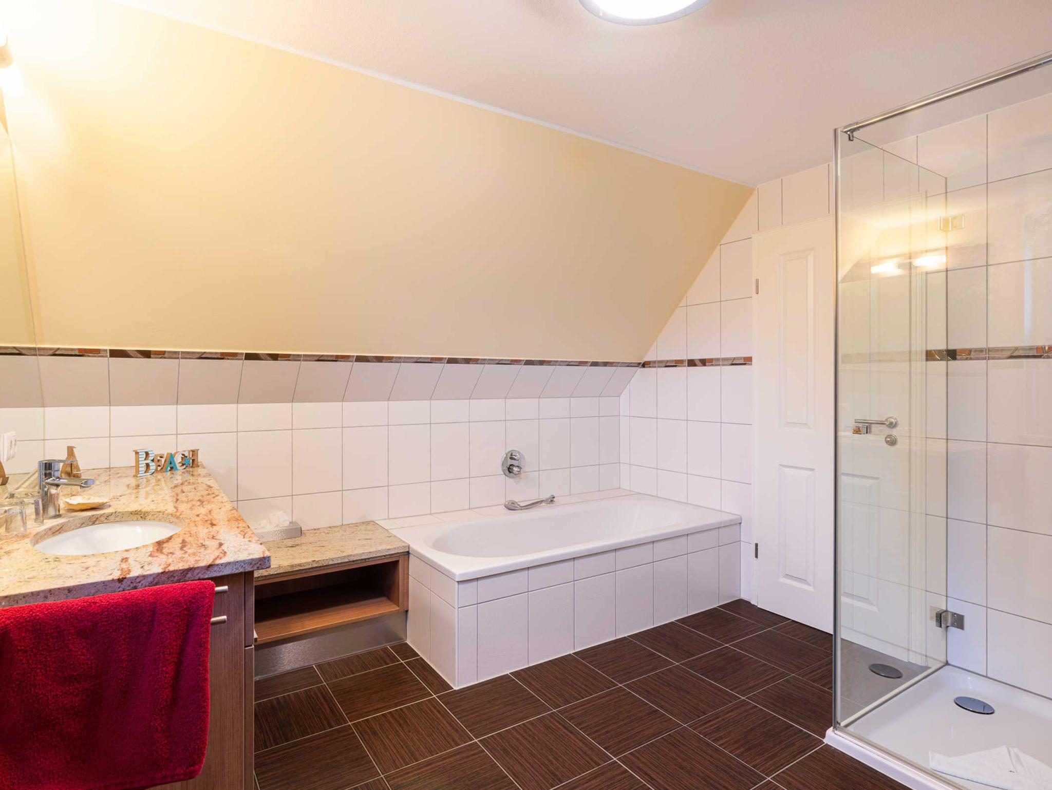- ein Wannenduschbad mit Sauna (Dusche/Wanne/WC/Sauna)