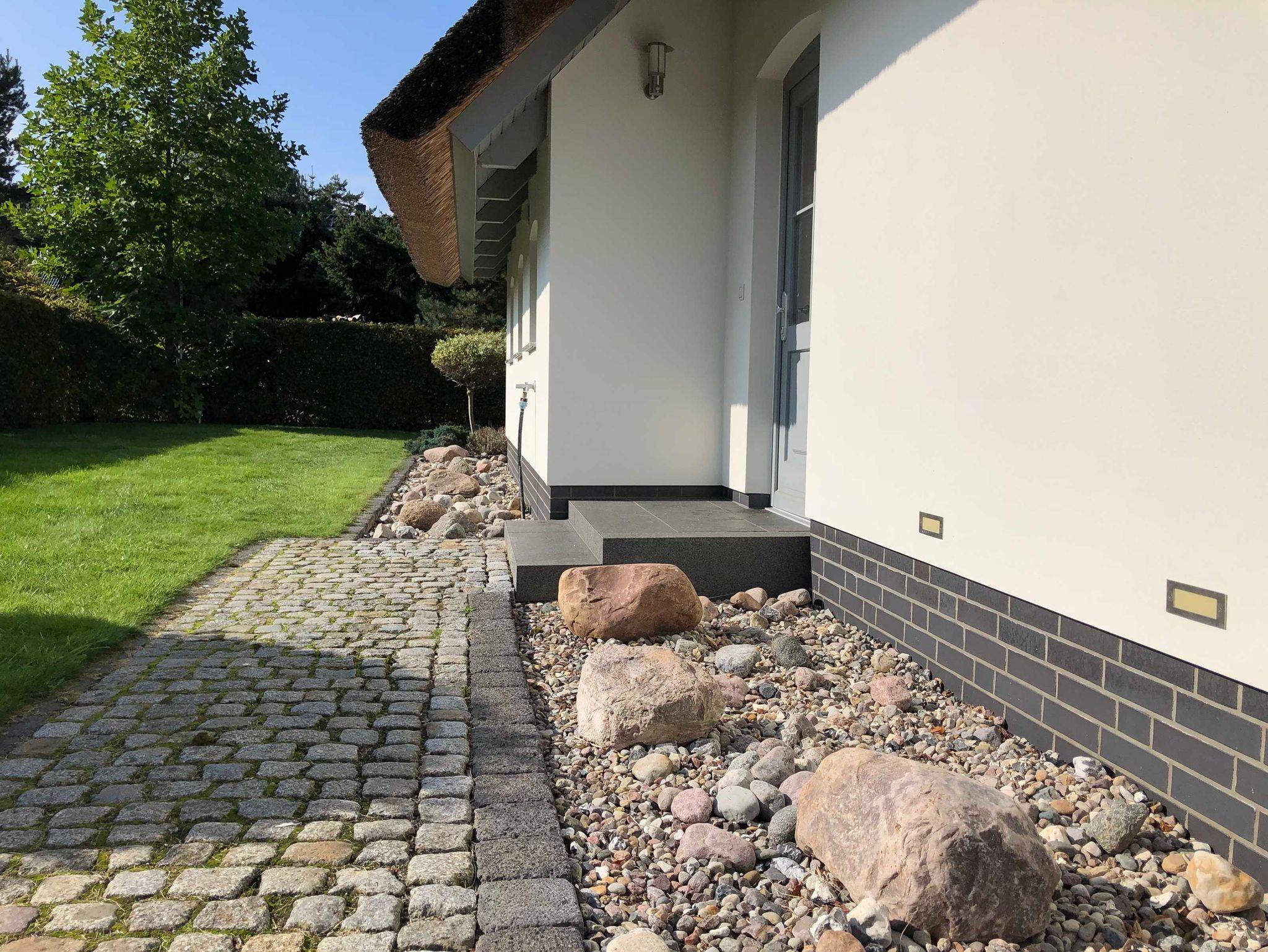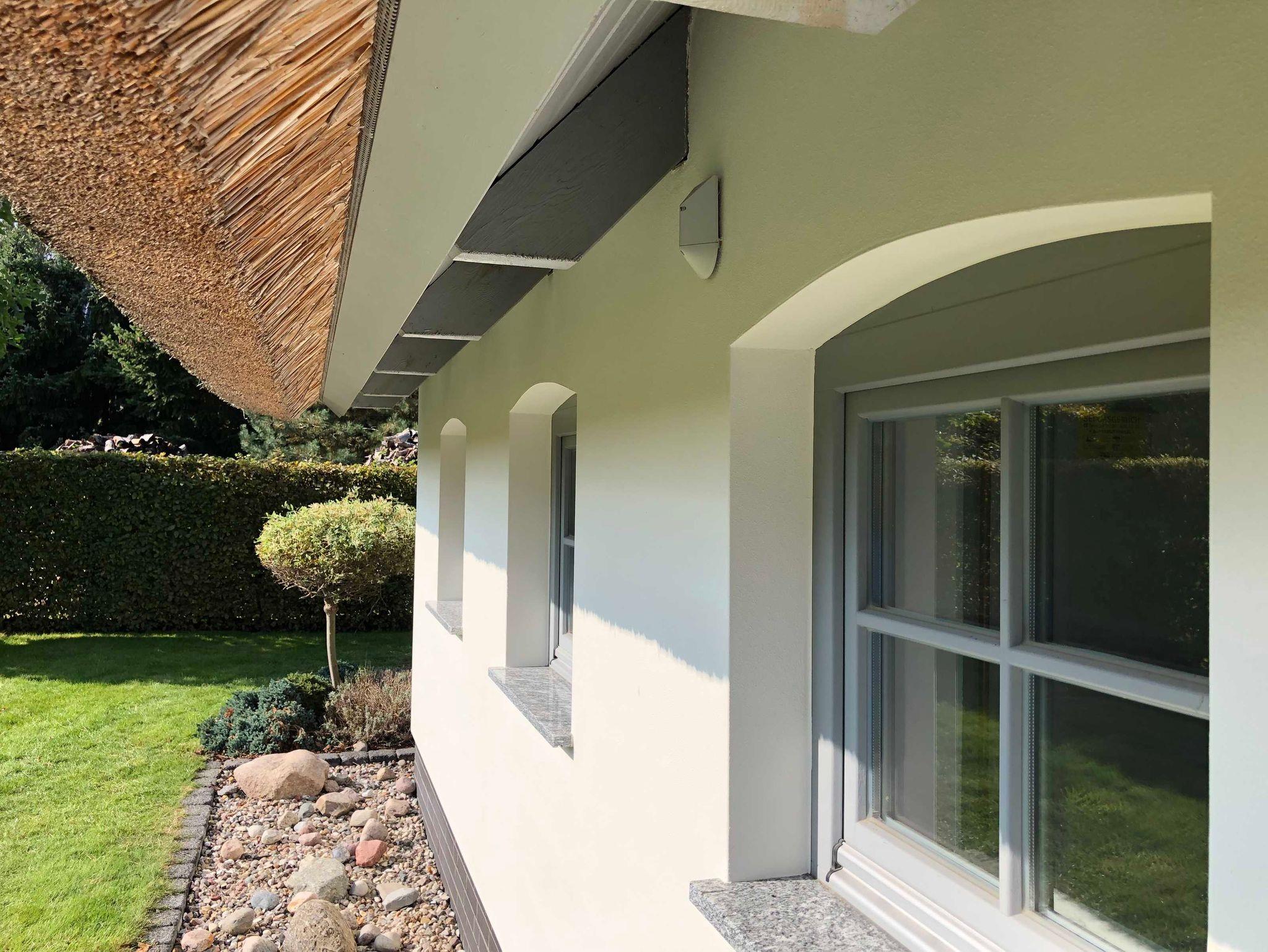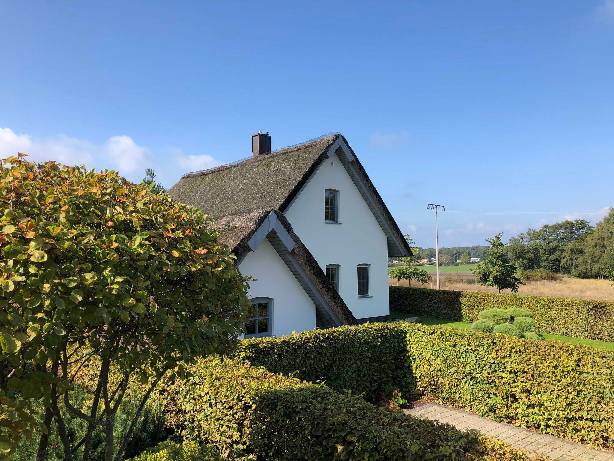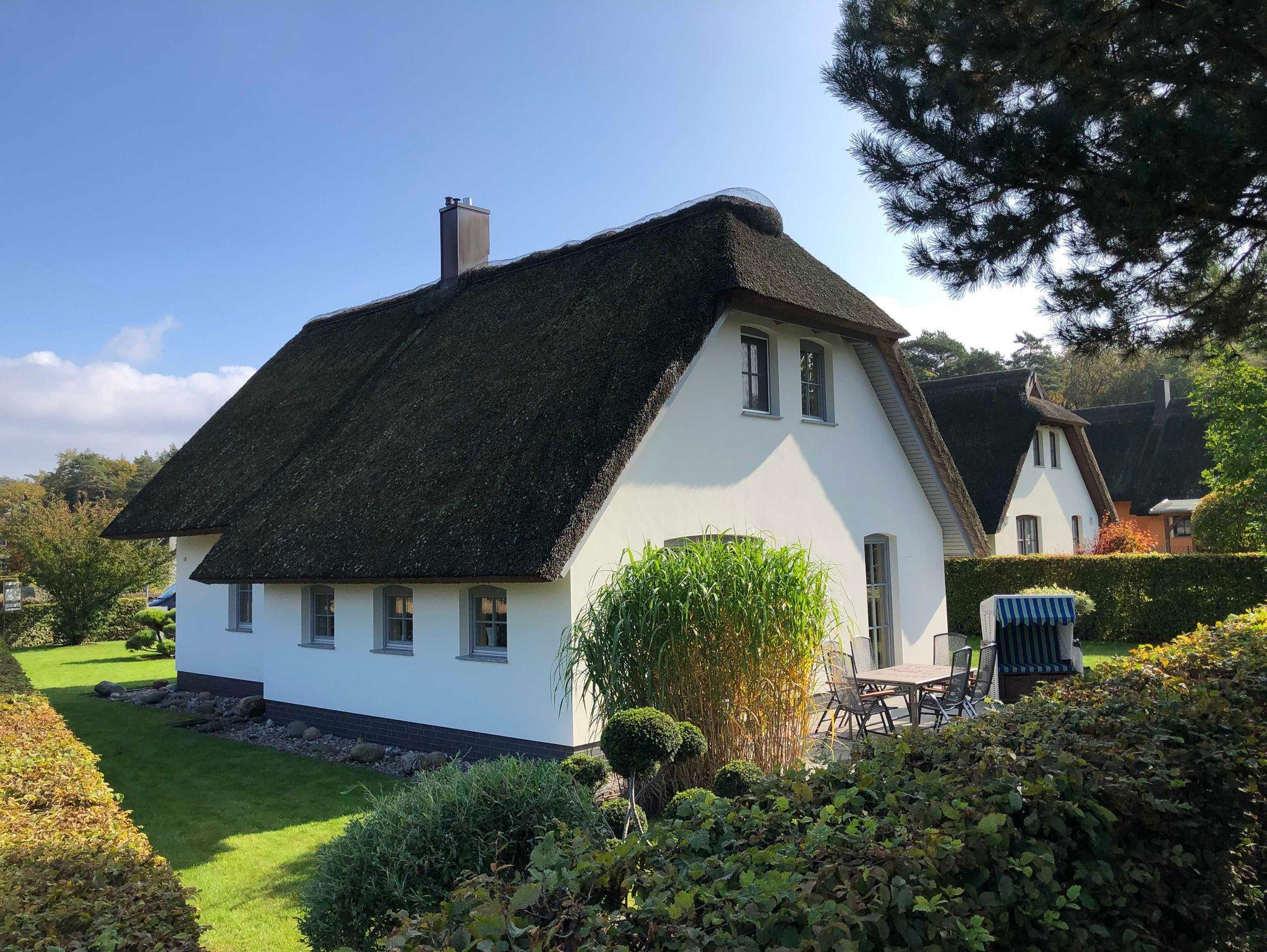 Dieses freistehende reetgedeckte Ferienhaus mit 110qm Wohnfläche wurde auf einem großzügigen und liebevoll gestaltetem Grundstück errichtet. Urlaubserleben und Komfort spiegeln sich in stilvoller Einrichtung im Wohn-und Eßbereich mit Kamin, den 2 Schlafzimmern, 2 Bädern+ Sauna und der idyllischen Sonnenterrasse wieder.