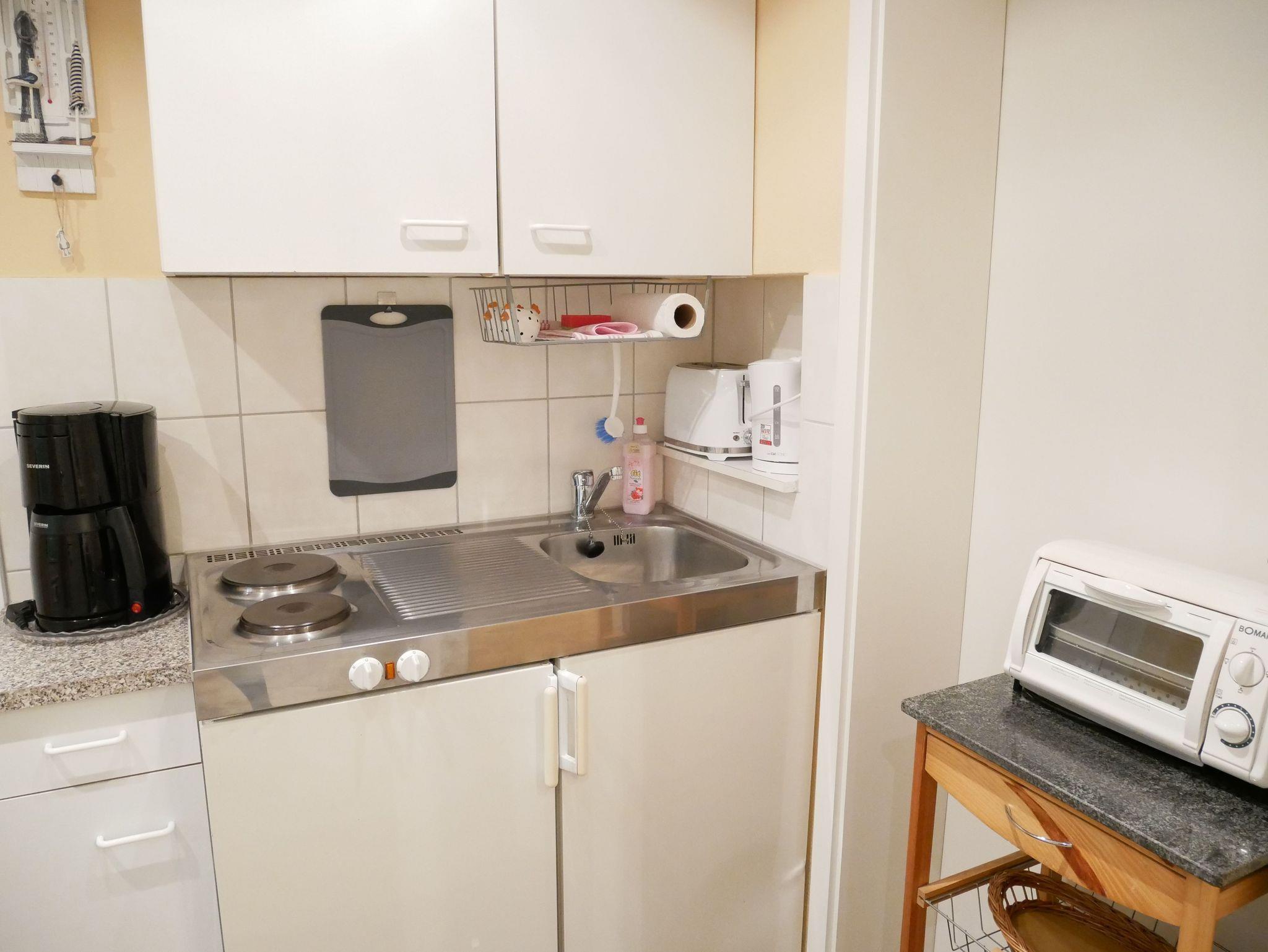 Die gemütliche und modern eingerichtete Ferienwohnung befindet sich im Erdgeschoss. Sie verfügt über ein Schlafzimmer mit 2 getrennten Boxspringbetten und einem Kleiderschrank. Im Wohnzimmer gibt es eine Couch (ausziehbar 140 x 200) mit Tisch, TV, Radio mit CD-Player und einen Essplatz mit 2 Stühlen. Im Dielenbereich befindet sich ein Pantry-Küche mit 2 Platten Herd und Kühlschrank mit Gefrierfach, sowie ein Minibackofen. Ein großes Tageslichtbad mit Dusche/WC und Fön. Eine Sitzecke im Garten, neben der Ferienwohnung lädt zum Verweilen ein. Ein Parkplatz steht kostenfrei auf dem Grundstück zur Verfügung. Nebenkosten inklusive. Bettwäsche kann mitgebracht werden oder gegen Gebühr dazugebucht werden. Bei Anreise liegt eine Erstausstattung Seife, Toilettenpapier, Spülmittel und ein Geschirrhandtuch für Sie bereit.