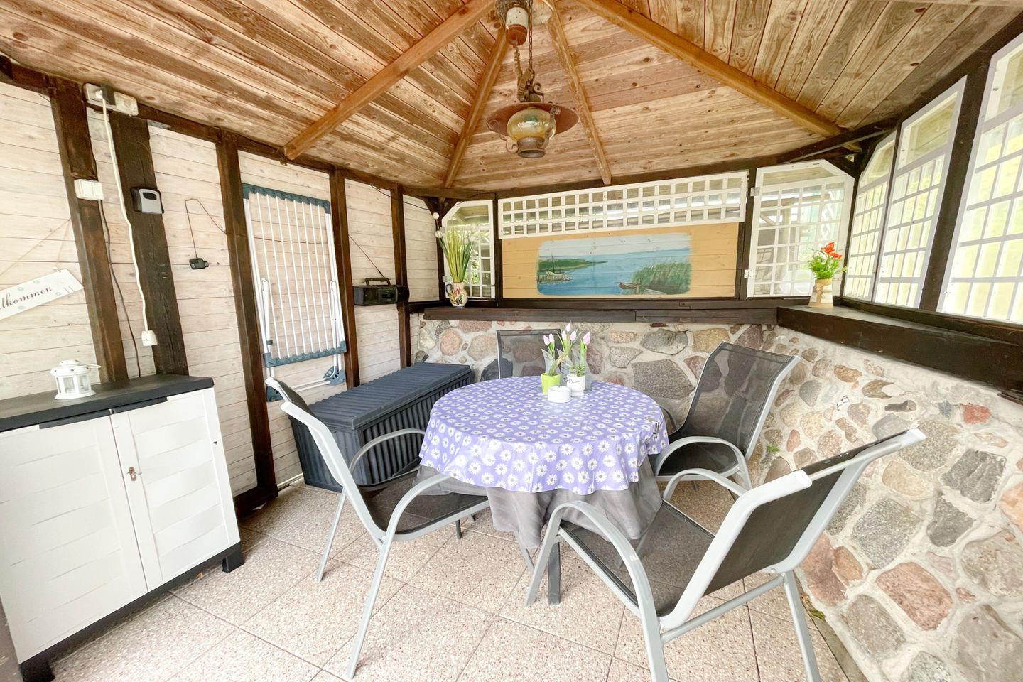 Zu den besonderen Vorzügen zählen die ruhige Dorflage nahe am Wald und die unmittelbare Nähe zu Naturlandschaften, die zu Wanderungen, Radtouren und Spaziergängen einladen. Der Achtersee befindet sich rund 300 Meter entfernt, der feinsandige Ostseestrand liegt in etwa 2,7 km Entfernung. Einkaufsmöglichkeiten finden Sie in ca. 2,8 km Entfernung, ein Restaurant ist bereits nach 100 m erreichbar. Öffentlicher Nahverkehr sowie der Bahnhof sind etwa 1,9 km entfernt, die nächste Stadt erreichen Sie nach 15 km.