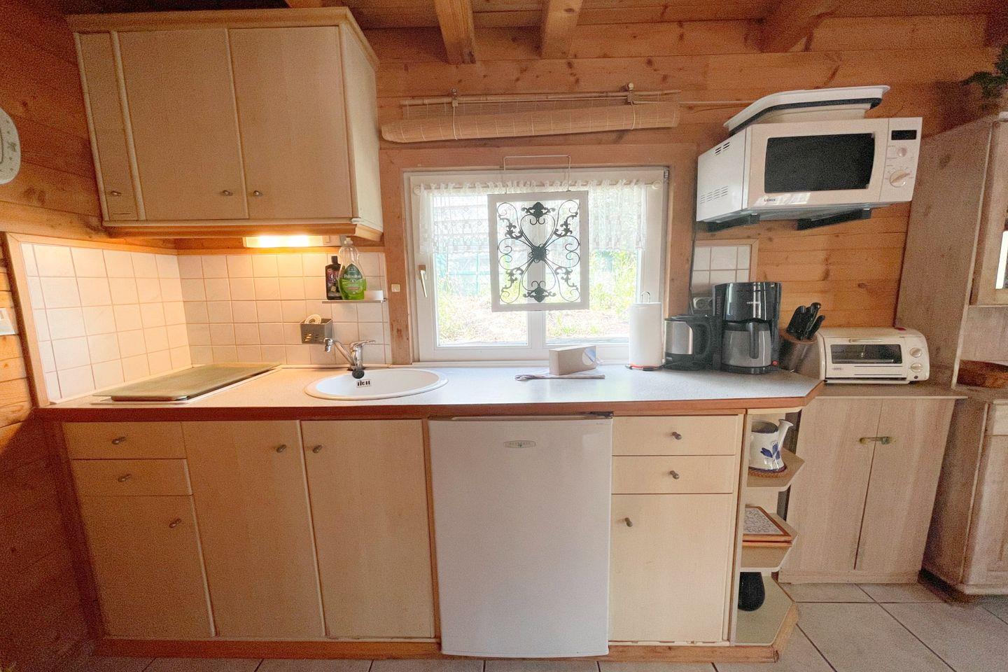 Im Wohnzimmer erwartet Sie ein digitales TV-Gerät mit Blu-ray-Player und eine gemütliche Sofaecke zum Entspannen. Der offene Essbereich grenzt direkt an die Küche, die mit Elektroherd (2-Platten), Backofen, Kühlschrank mit Gefrierfach, Mikrowelle, Wasserkocher, Kaffeemaschine, Toaster sowie umfangreichen Küchenutensilien ausgestattet ist. Für gemeinsamen Genuss stehen ein Esstisch und ausreichend Geschirr zur Verfügung. Ein Ganzkörperspiegel, Kommode, Garderobe und Staubsauger runden die umfassende Ausstattung ab.