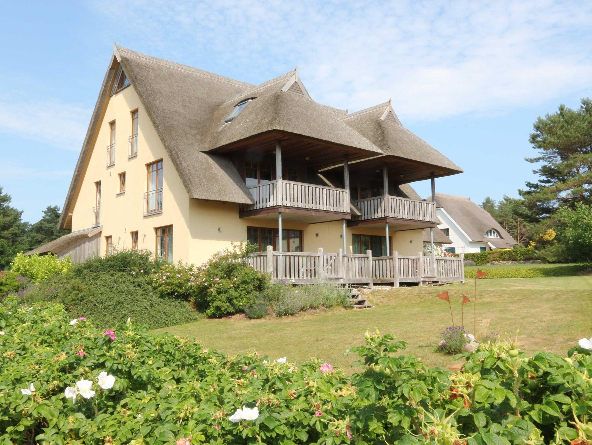 Die Wohnungen befinden sich in einer neuen großzügig angelegten Reethaussiedlung 300 m vom Achterwasser entfernt in 17459 Loddin, Straße der Deutschen Einheit 13 a in der Inselmitte. Die Holzterrasse der Erdgeschosswohnung und der Balkon der Obergeschosswohnung sind zur Südseite ausgerichtet mit Blick auf das Achterwasser. Unweit befindet sich ein Bootshafen, ein Bootsverleih und 5 gastronomische Einrichtungen. Auch ein Reiterhof ist im Ortsteil Kölpinsee. Der Ostseestrand ist bequem per Rad oder Auto in 10 Minuten erreicht. Fahrräder konnen gemietet und zur Fewo geliefert werden.