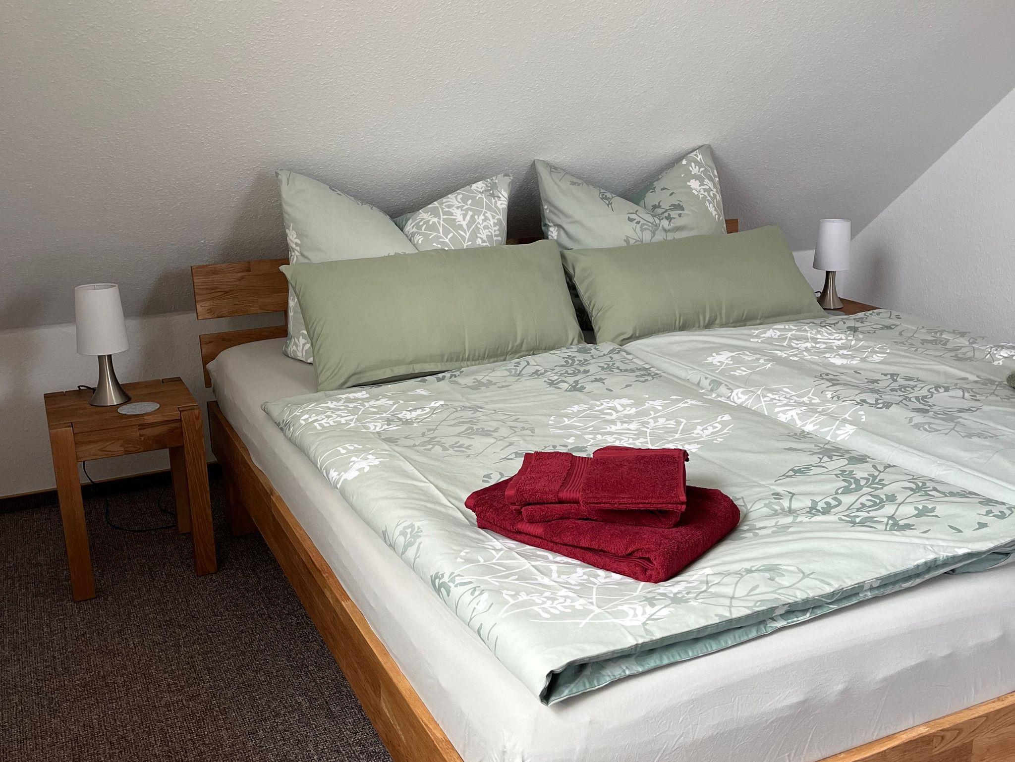 • Schlafzimmer mit Doppelbett und Kleiderschrank