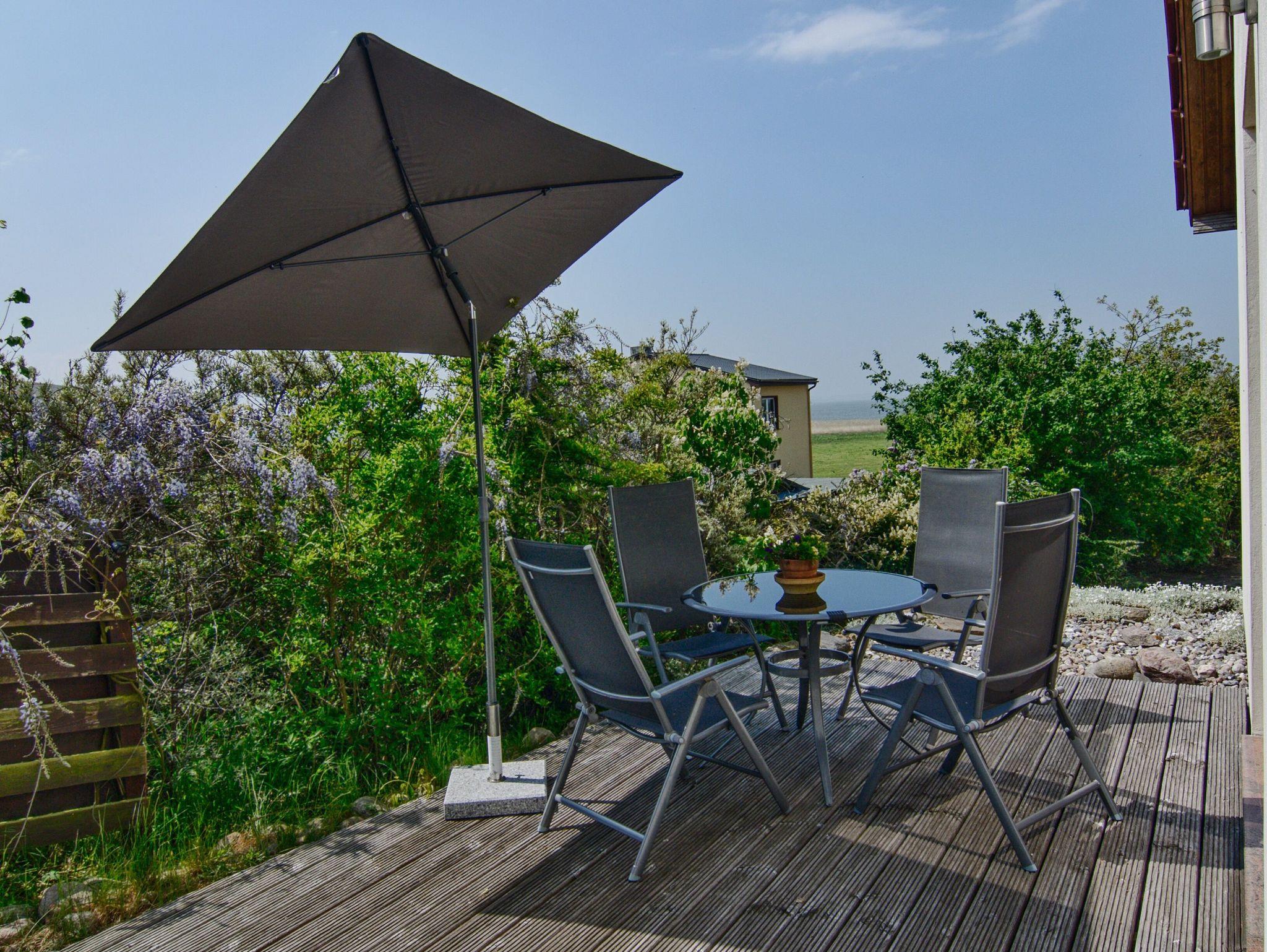 Jedes Appartment verfügt über eine seperate und großzügige Holtzterasse. Genießen Sie von hieraus einen phantastischen Ausblick auf das Achterwasser und erleben Sie unvergessliche und romantische Sonnenuntergänge.