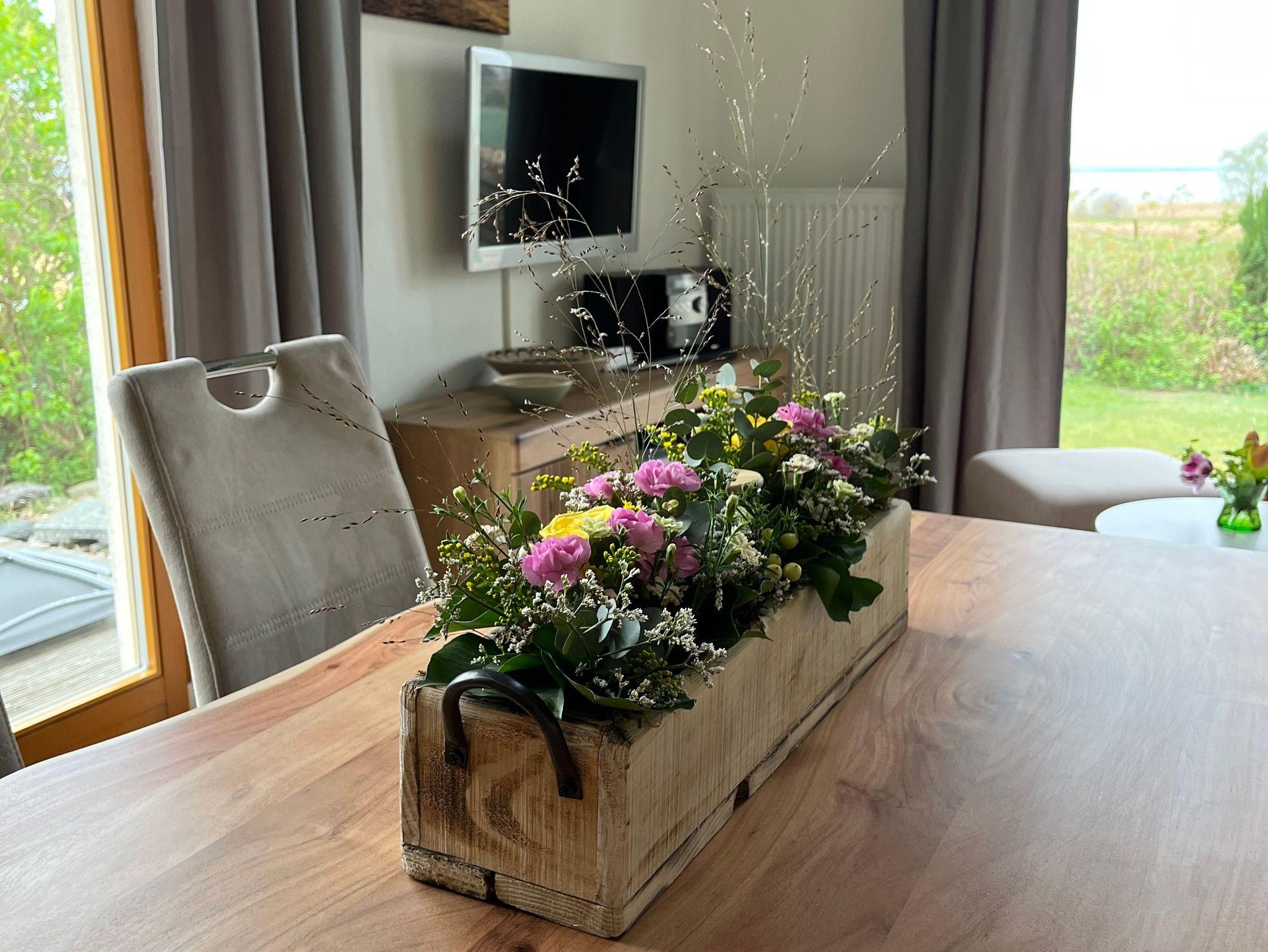 Wir bieten Ihnen hier eine herrliche Ferienwohnung im Erdgeschoss unseres herrlichen Hauses für 2 bis 4 Personen. Zur Wohnung gehört 1 Bad, 1 Schlafzimmer, 1 Wohnzimmer mit offener Küche und Essecke, 1 Flur , 1 großzügige Holzterrasse und 1 KFZ-Stellplatz. Aus der Wohnung haben Sie einen herrlichen Ausblick auf das Achterwasser mit wunderschönen abendlichen Sonnenuntergängen. Diese Wohnung ist bestens geeignet für eine Familie mit einem Kleinkind ( Babybett im Schlafzimmer möglich ) oder zwei Kindern als Aufbettung.