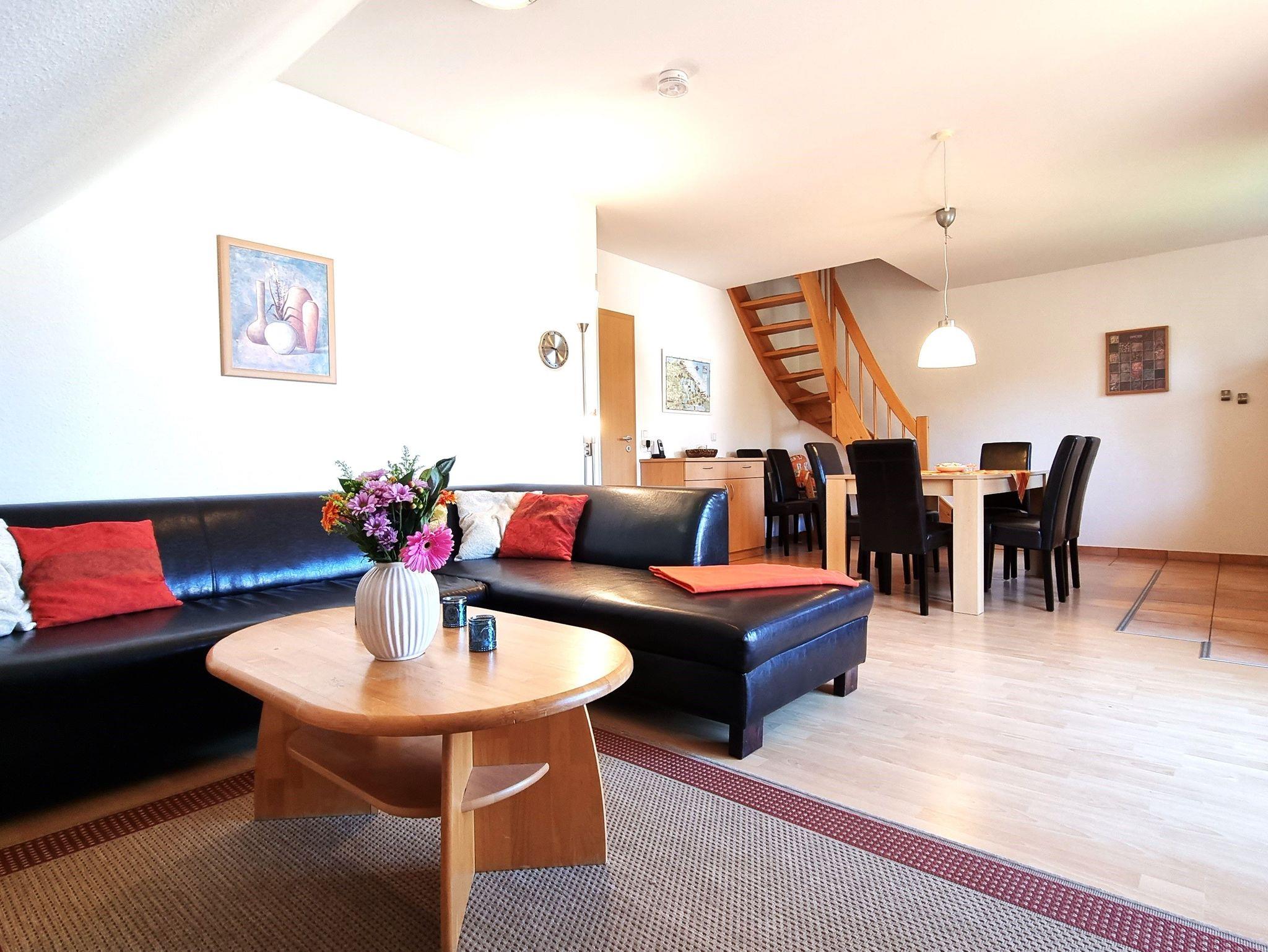 Die 4-Zimmer-Ferienwohnung hat ihren Eingang im 1. Obergeschoss und verfügt über insgesamt 2 Etagen.
