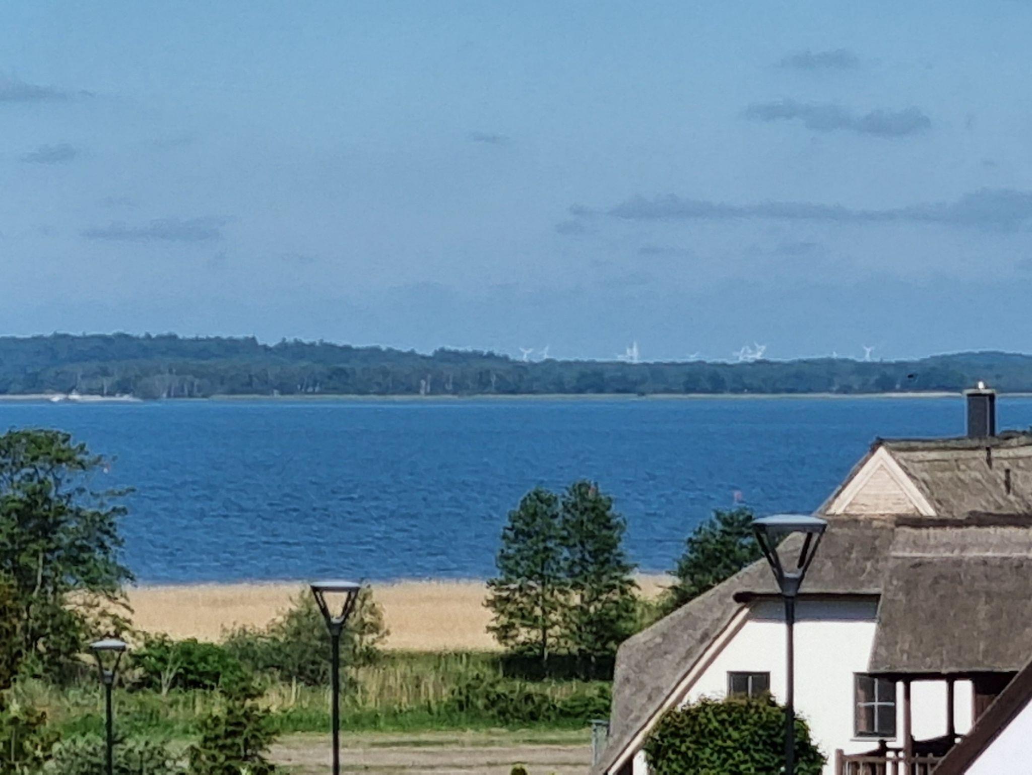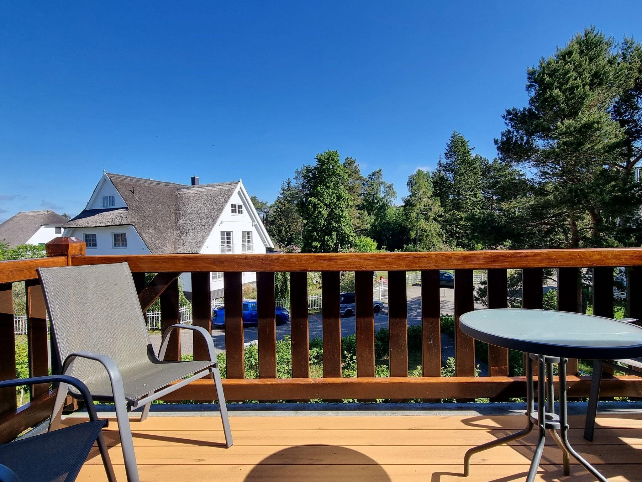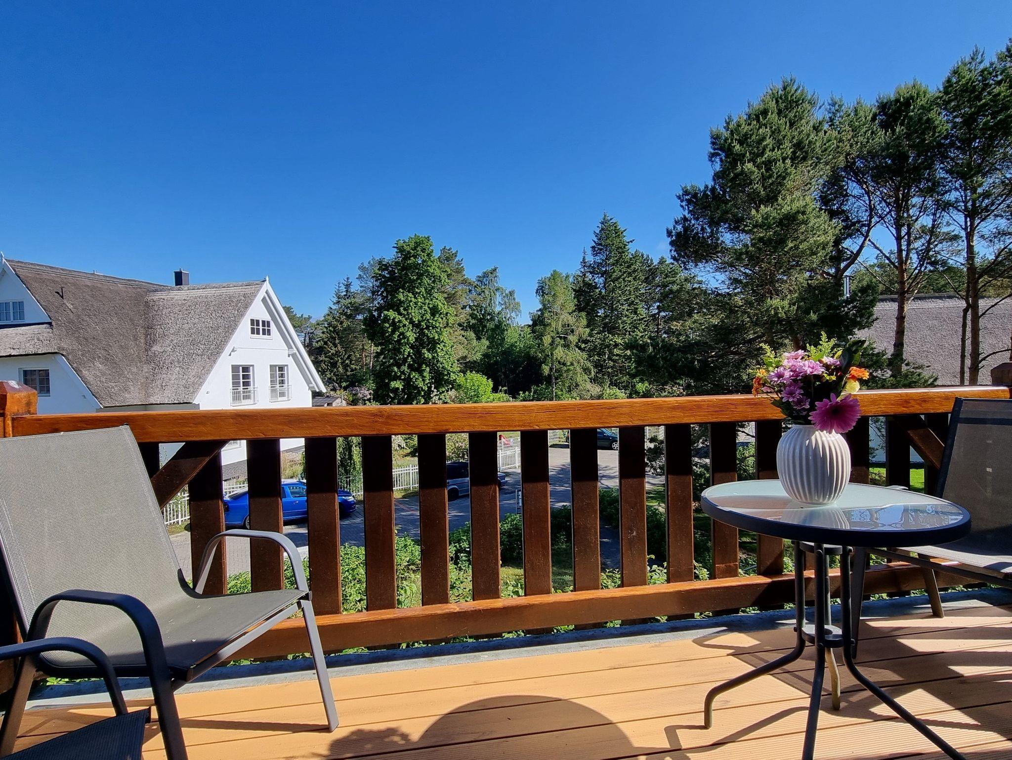 • Balkon mit Tisch und 4 Stühlen und einem herrlichen Ausblick auf das Achterwasser.