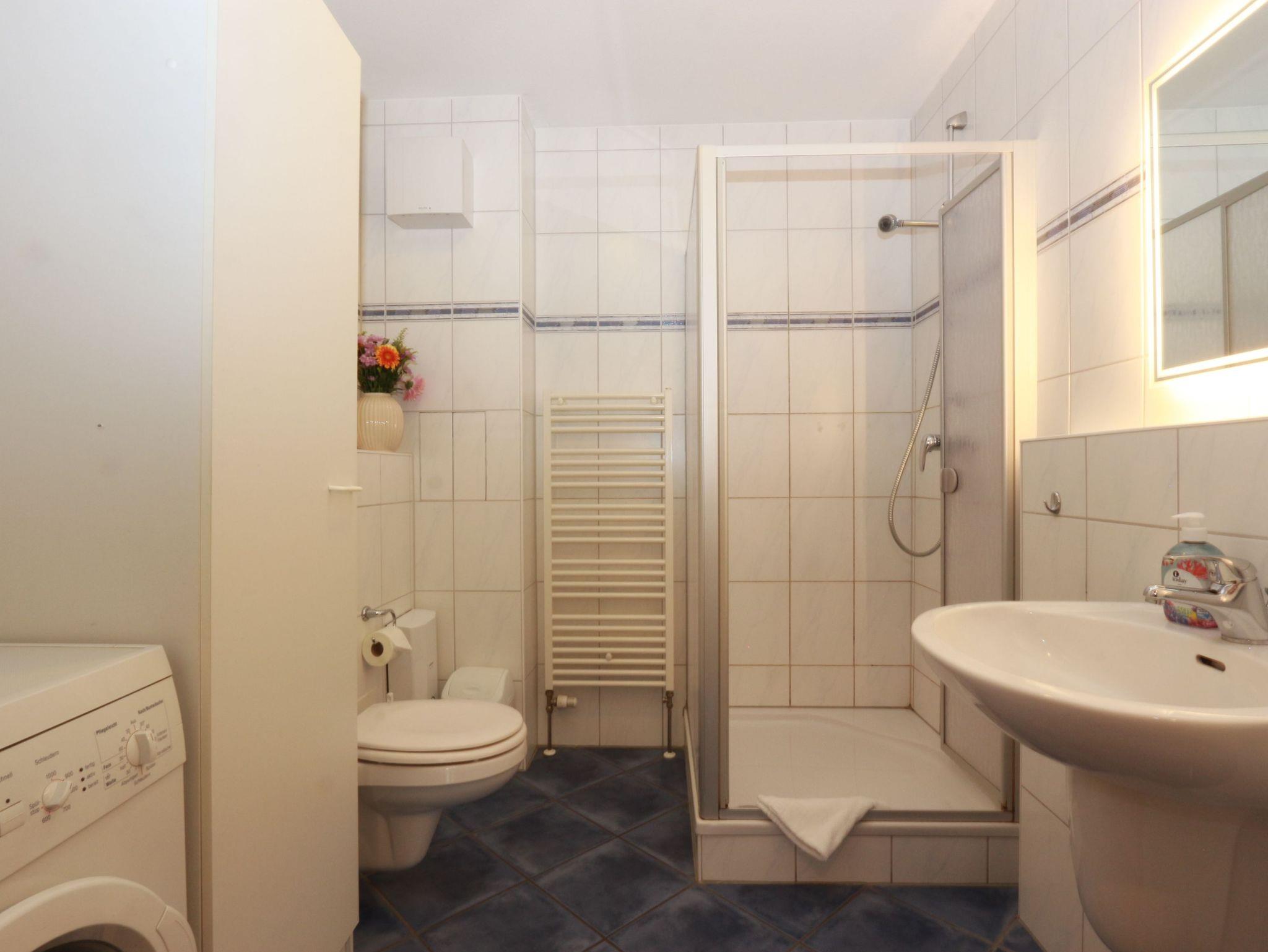 • 1 Bad mit Dusche, Waschbecken, WC, Handtuchtrockner-Heizkörper, Münzwaschmaschine