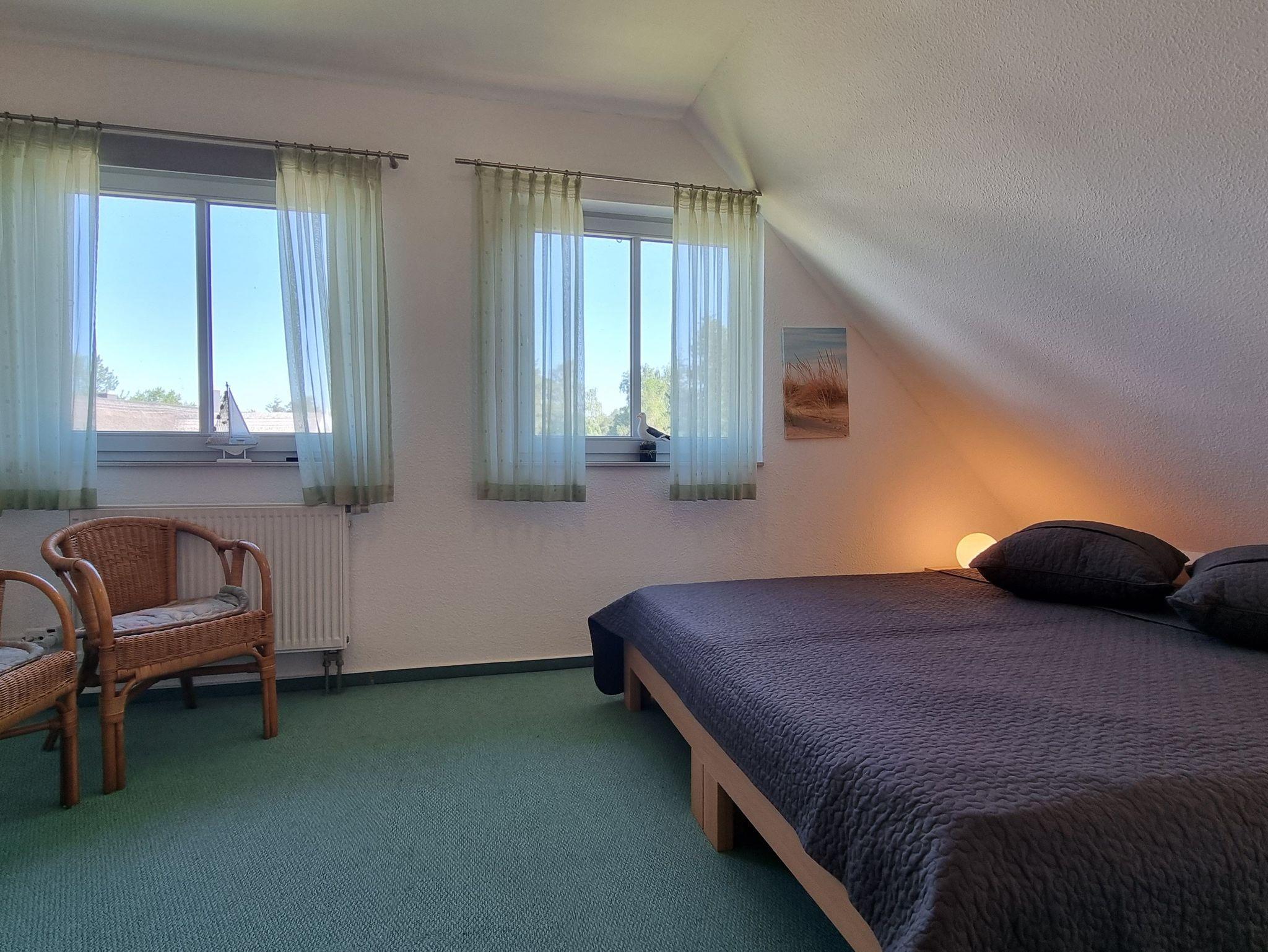 Diese 4-Zimmer-Ferienwohnung ist modern, wohnlich und liebevoll eingerichtet. Die Wohnung hat ca. 90 m² Wohfläche verteilt auf 2 Ebenen in einem sehr schönen Reetdachhaus mit Blick auf das Achterwasser.