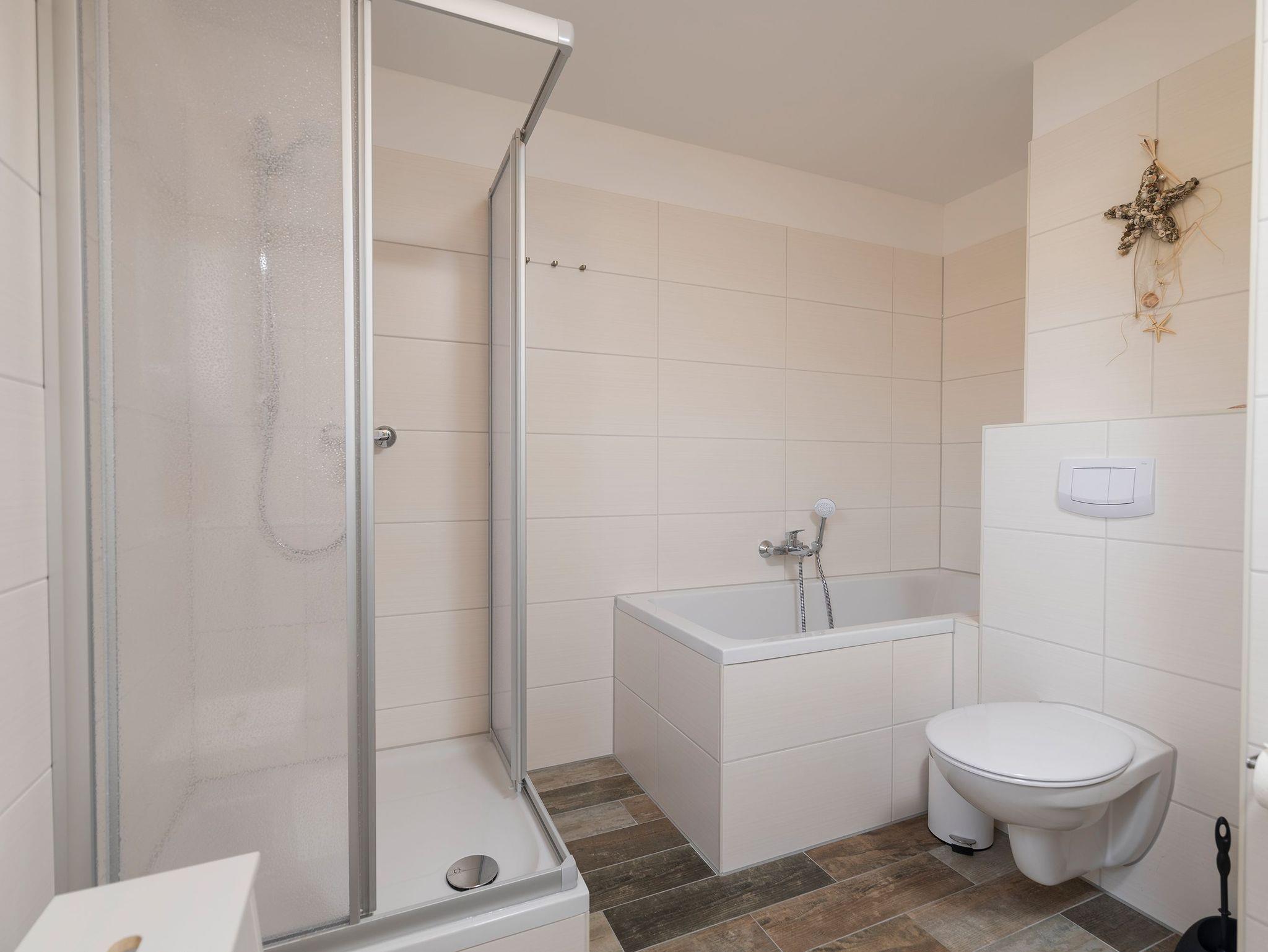 • Badezimmer mit Dusche und Badewanne