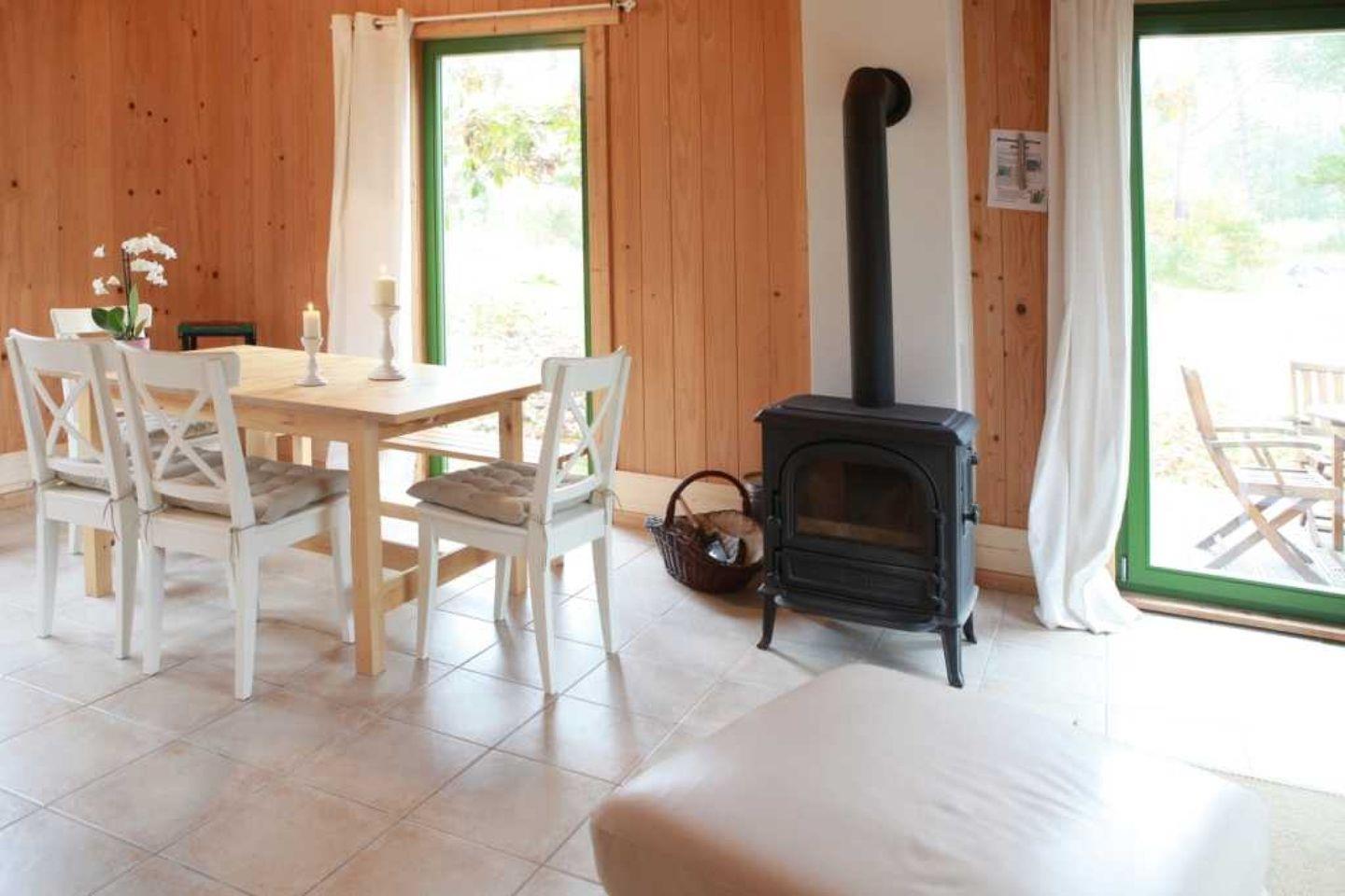 Genießen Sie die Zeit im Wohnzimmer mit einer gemütlichen Sofaecke und einem Kaminofen, der an kühleren Abenden für wohlige Wärme sorgt. Ein modernes TV-System lässt Sie nach einem aufregenden Tag am Strand entspannen und Ihre Lieblingssendungen genießen.
