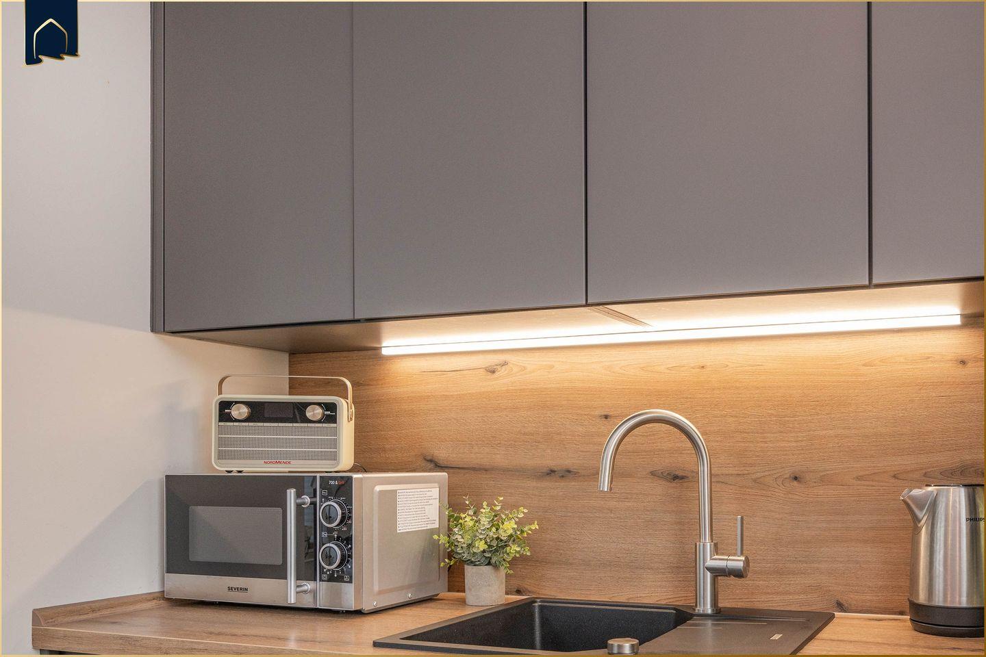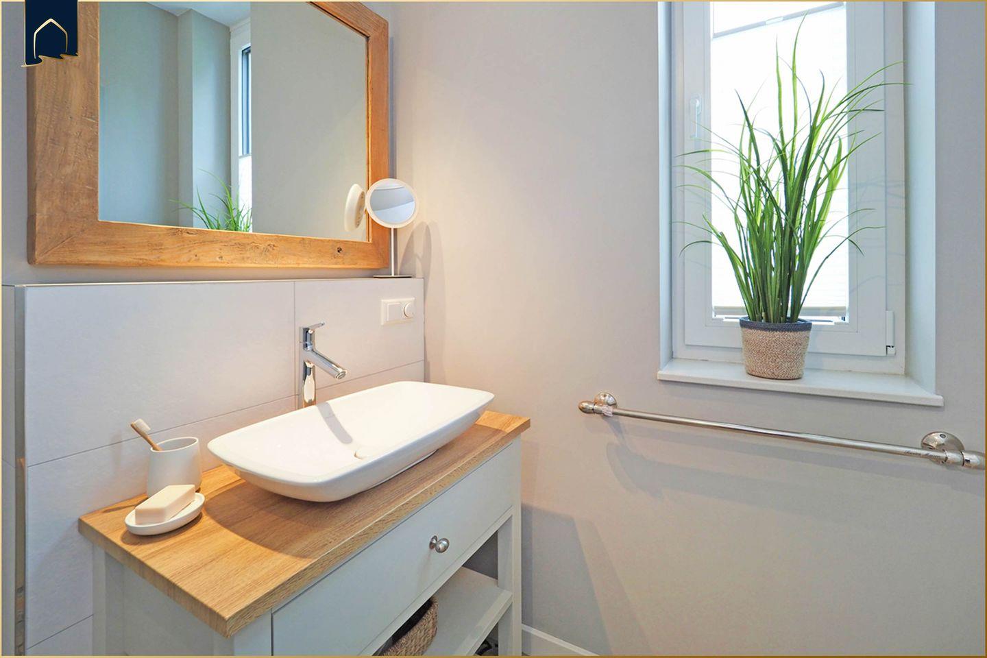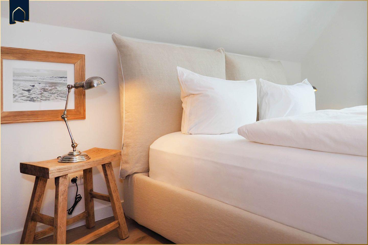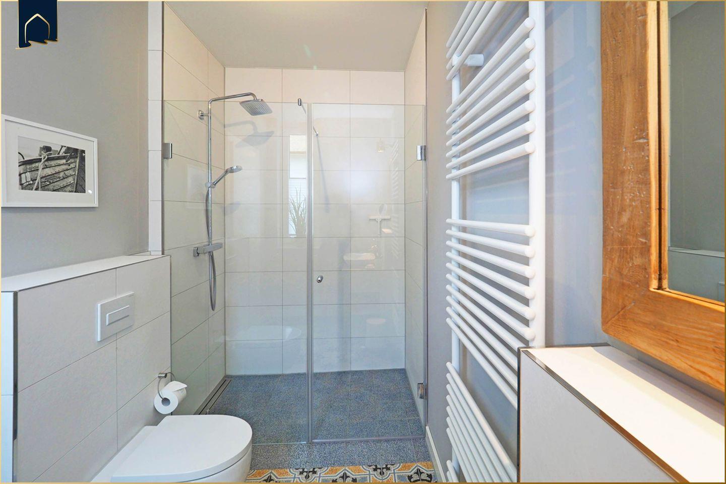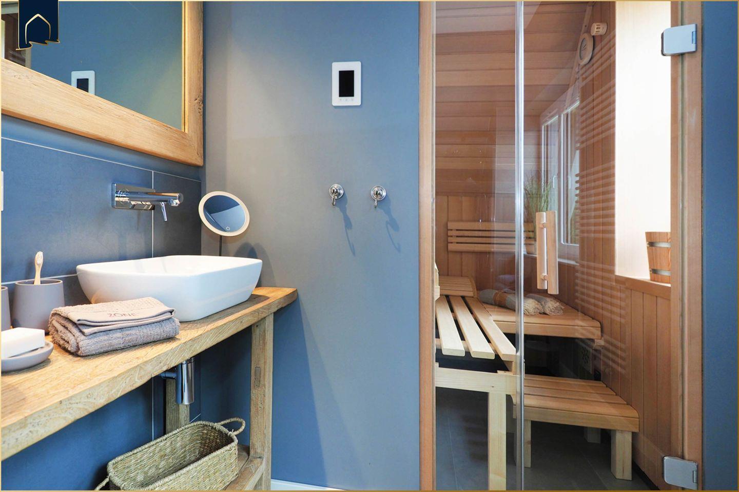 Zwei moderne Badezimmer mit bodengleichen Walk-in-Duschen, eines davon mit Doppelwaschtisch und eigener Sauna, sowie ein zusätzliches Gäste-WC sorgen für den gewissen Luxus. Für den Alltag ist ebenfalls gesorgt: Waschmaschine, WLAN und zwei Parkplätze direkt am Haus stehen Ihnen zur Verfügung.