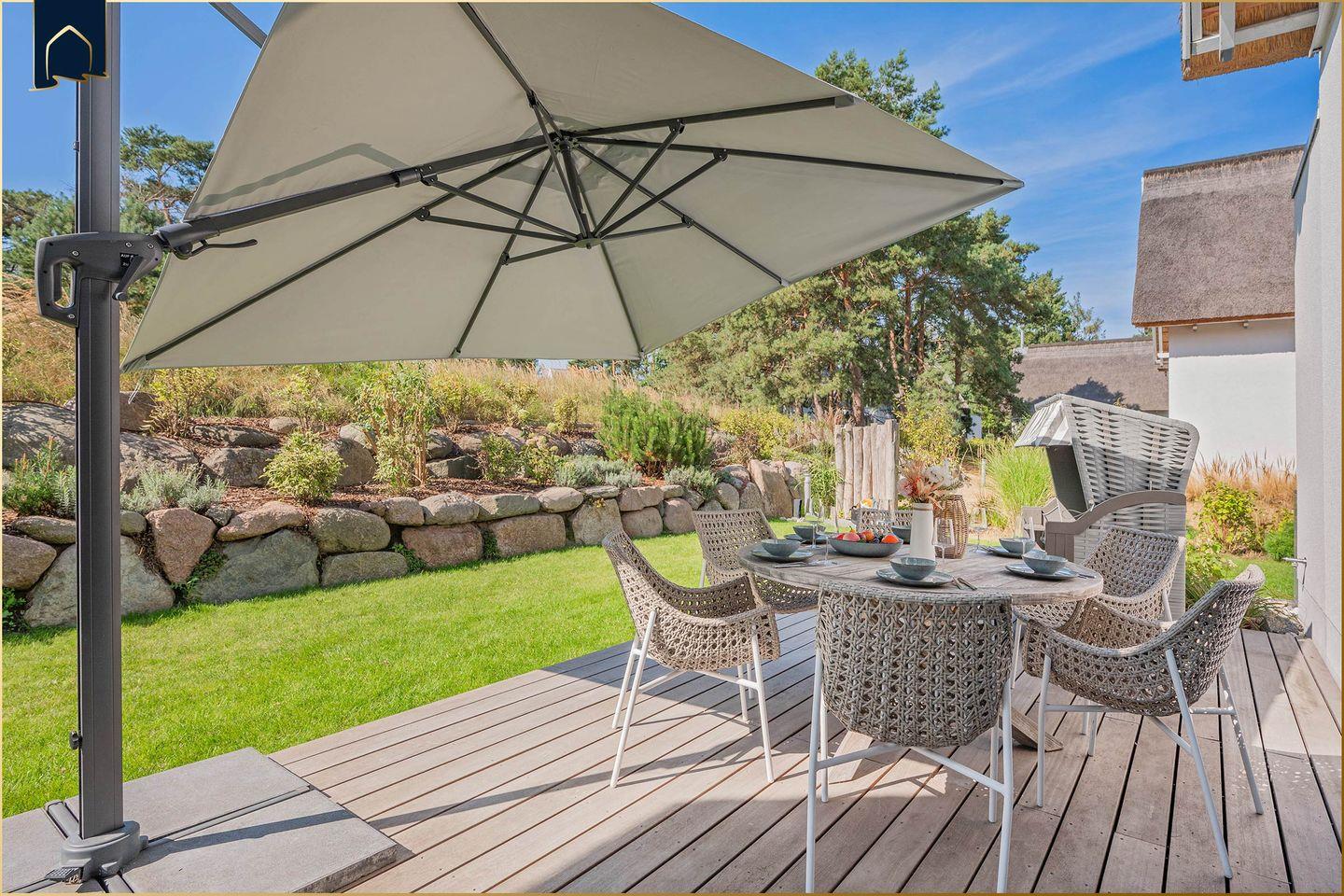 Das luxuriöse Ferienhaus Störtebekers Reethus in Loddin bietet auf 145 m² Platz für bis zu 6 Personen. Freuen Sie sich auf drei Schlafzimmer, zwei moderne Bäder, eine eigene Sauna, einen offenen Wohn- und Essbereich, eine hochwertige Küche sowie eine Terrasse und einen Garten mit Strandkorb. Ein Privatparkplatz mit E-Auto-Ladestation und WLAN runden das Angebot ab. Pro Home Premium Objekt: Bademäntel, Saunatücher und Begrüßungswasser erwarten Sie zu Ihrer Anreise in diesem Ferienobjekt.