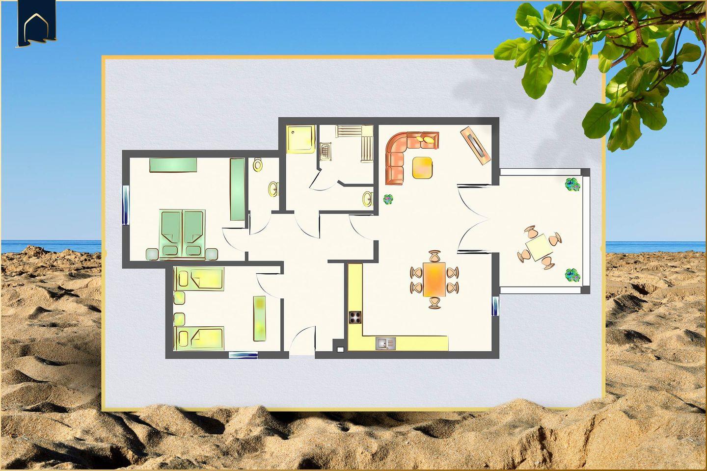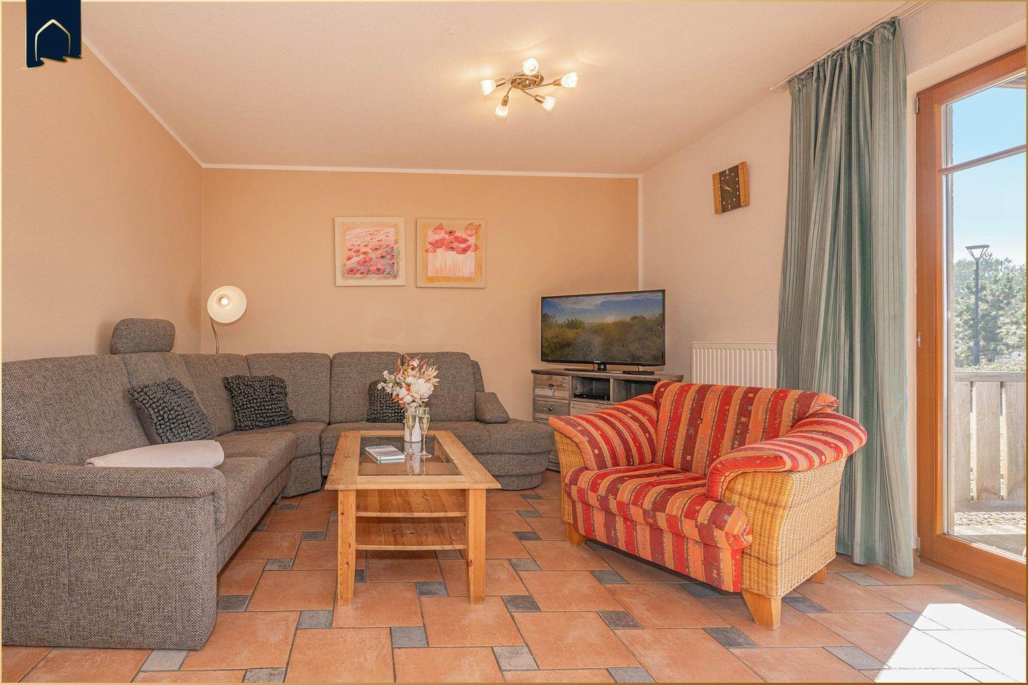 Im Inneren überzeugt die Ferienwohnung mit einer modernen Ausstattung und viel Liebe zum Detail. Zwei gemütliche Schlafzimmer, ein helles Wohnzimmer mit TV und Sofaecke sowie ein Badezimmer mit Dusche und ein zusätzliches Gäste-WC sorgen für Komfort und Behaglichkeit. Die voll ausgestattete Küche verfügt über Backofen, Herd, Spülmaschine, Mikrowelle, Kaffeemaschine, Wasserkocher, Toaster sowie reichlich Geschirr und Küchenutensilien – perfekt für Selbstversorger.
