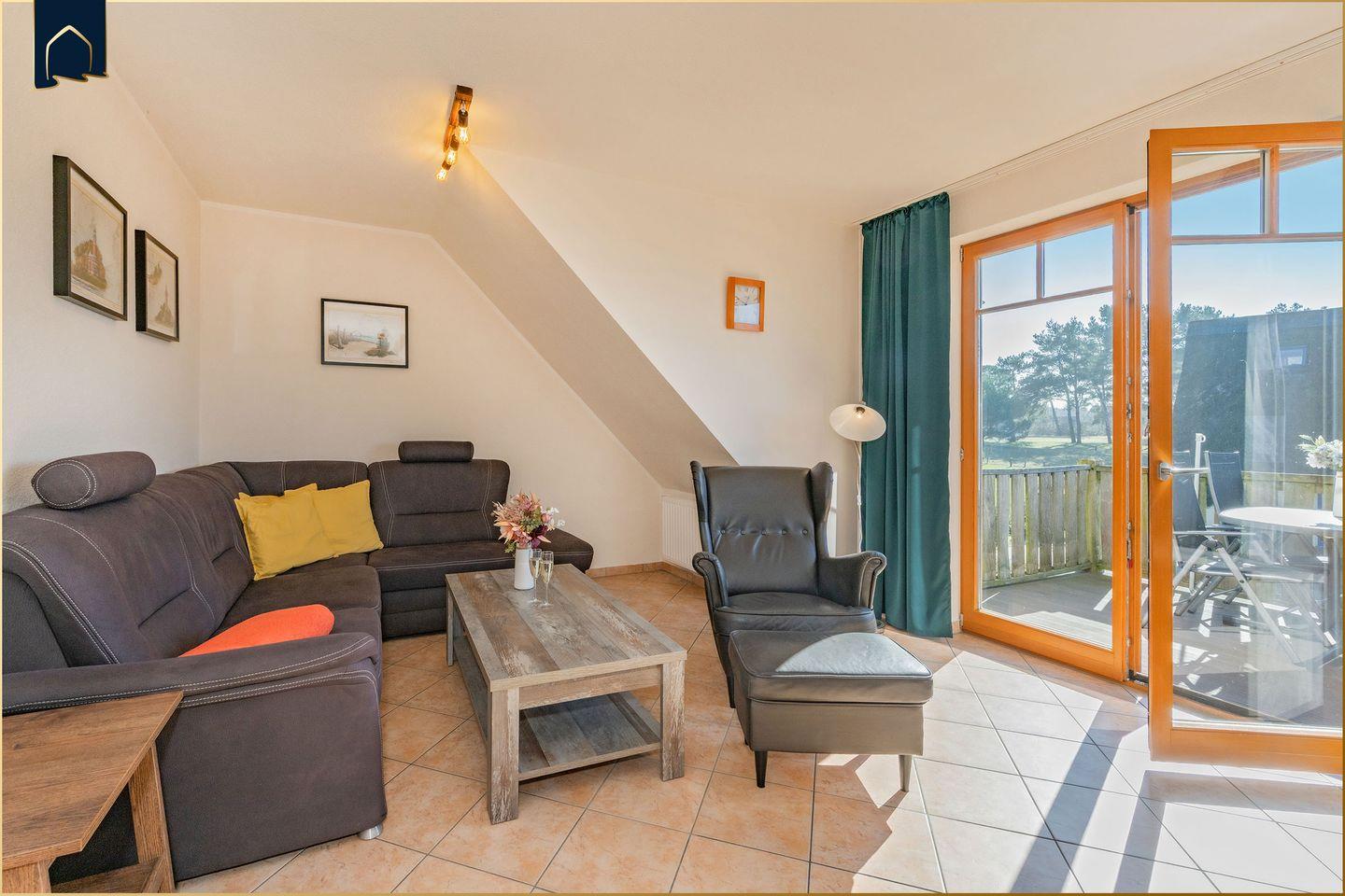 Dank der zwei Etagen bietet die Wohnung ausreichend Raum für Privatsphäre und gemeinsame Zeit. Nach einem erlebnisreichen Tag können Sie in der privaten Sauna entspannen, während die Kinder im Garten spielen oder Sie es sich mit einem Buch im gemütlichen Sessel bequem machen. Fliegengitter, Sichtschutz an allen Fenstern sowie zahlreiche Komfortausstattungen wie Waschmaschine, Geschirrspüler, Haartrockner, Kaffeemaschine und Mikrowelle sorgen für einen rundum angenehmen Aufenthalt.