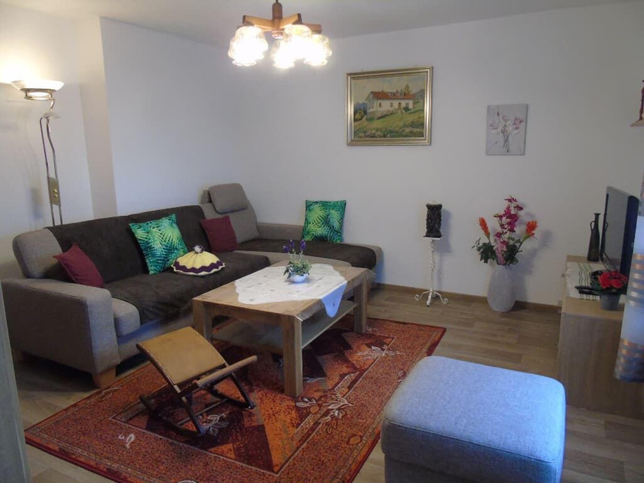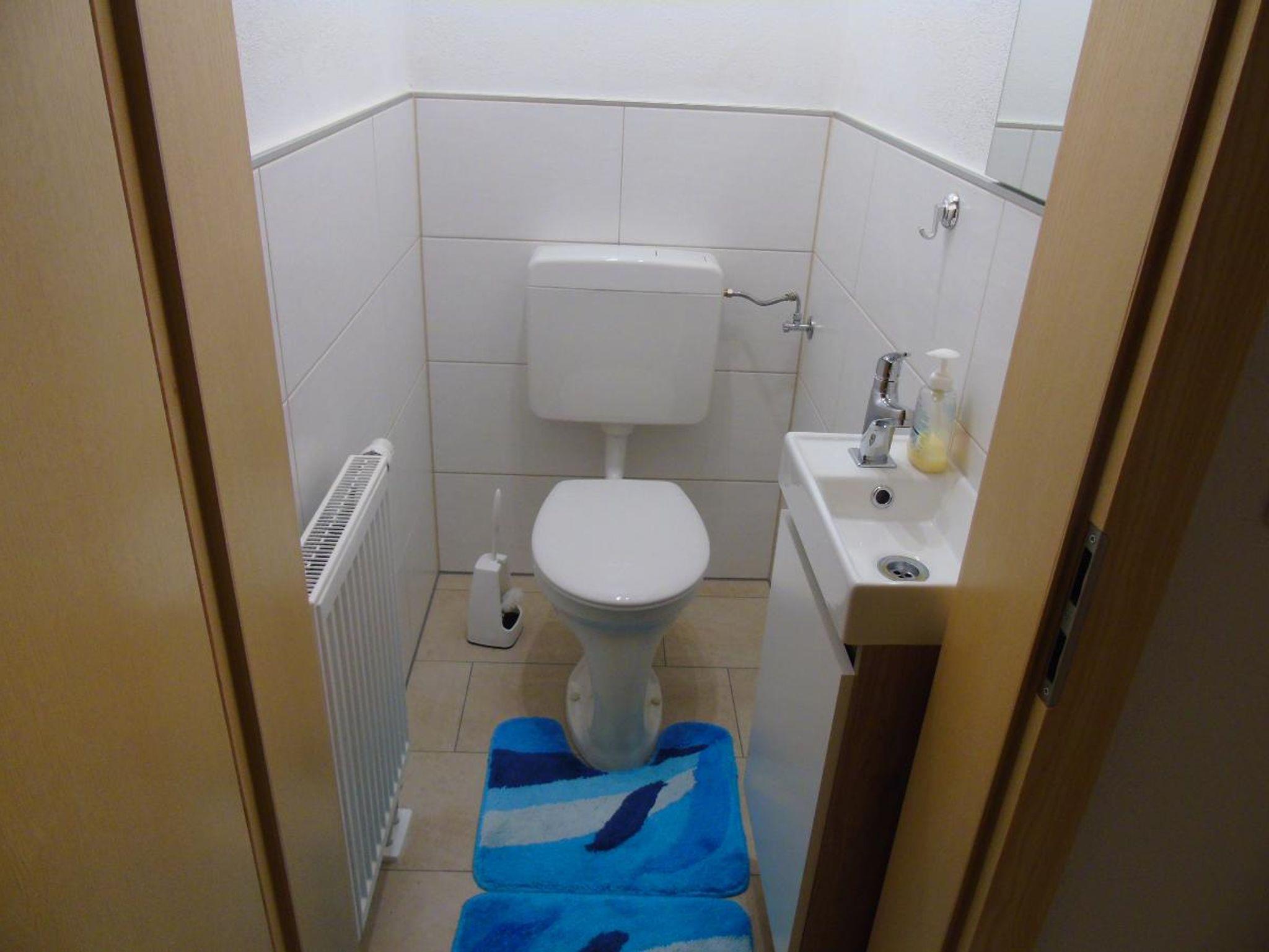 Die Nichtraucher - FW hat einen sep. Eingang über 8 Treppen oder über den Behinderten Zugang, eine Küche mit Küchenzeile, Geschirrspüler, Mikrowelle,Toaster, Eierkocher, Wasserkocher, Kaffeemaschine, Essecke für 3 Pers., Wohnzimmer mit großem Ecksofa, Sat-TV, W-LAN, 1 Schlafzimmer mit Doppelbett, 1 Schlafzimmer mit Einzelbett, große Nasszelle mit WC und Waschmaschine, Bügeleisen, Bügelbrett, 1 sep. WC, 1 Abstellraum und Unterstellmöglichkeit für Fahrräder oder Ski.