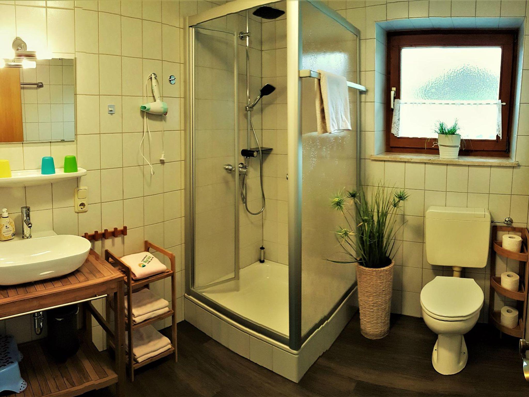 Das geräumige Badezimmer mit Dusche/WC und Fön rundet das Gesamtbild ab.