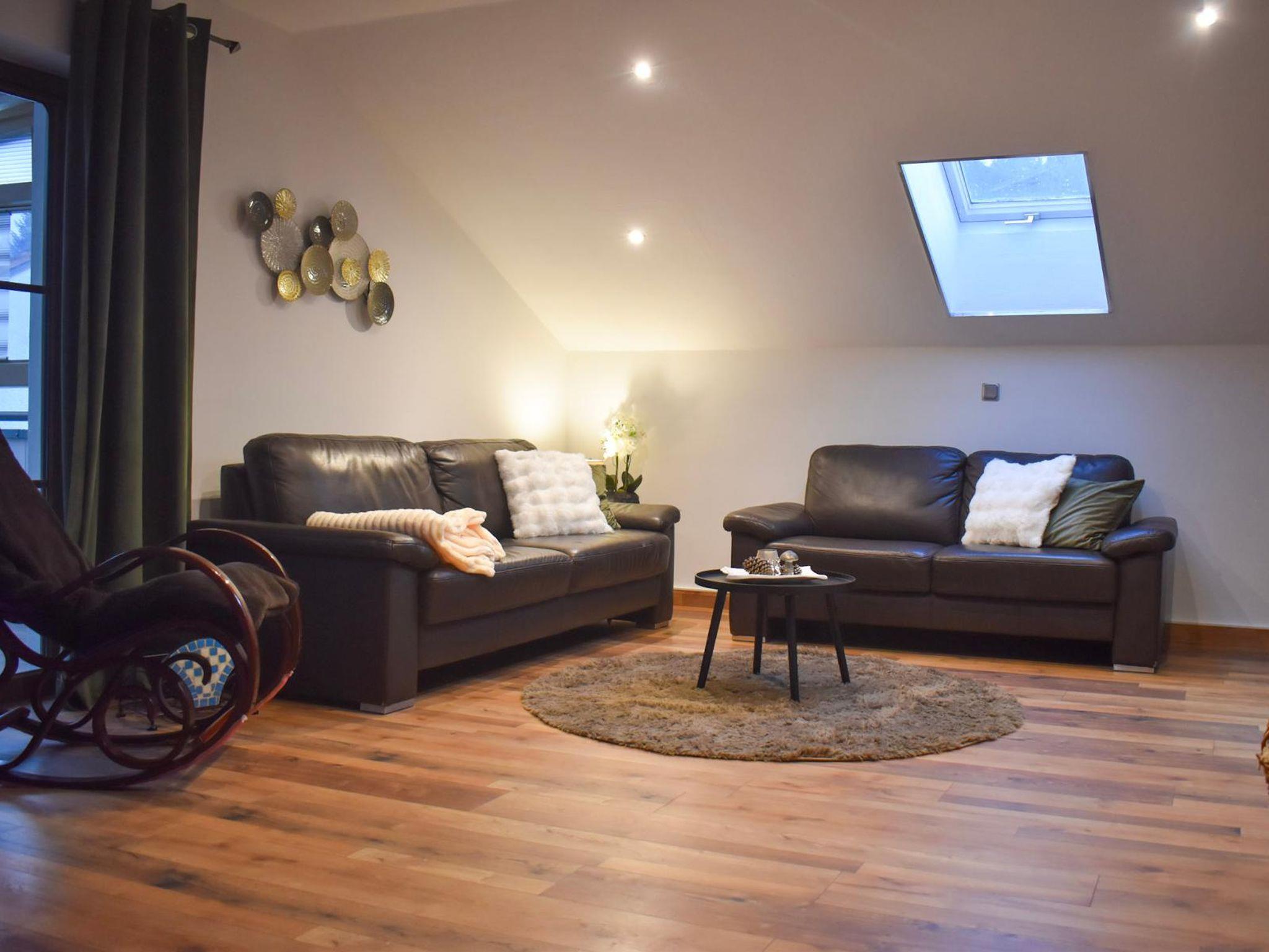Unsere 75 qm große Ferienwohnung eignet sich für Paare oder Familien. Insgesamt für 4 Personen geeignet. Die Wohnung befindet sich im Obergeschoss und verfügt über zwei Schlafzimmer mit Doppelbetten. Der Wohn- und Essbereich ist offen und gemütlich gestaltet. Der Kaminofen sorgt für wohlige Wärme und eine schöne Atmosphäre am Abend.