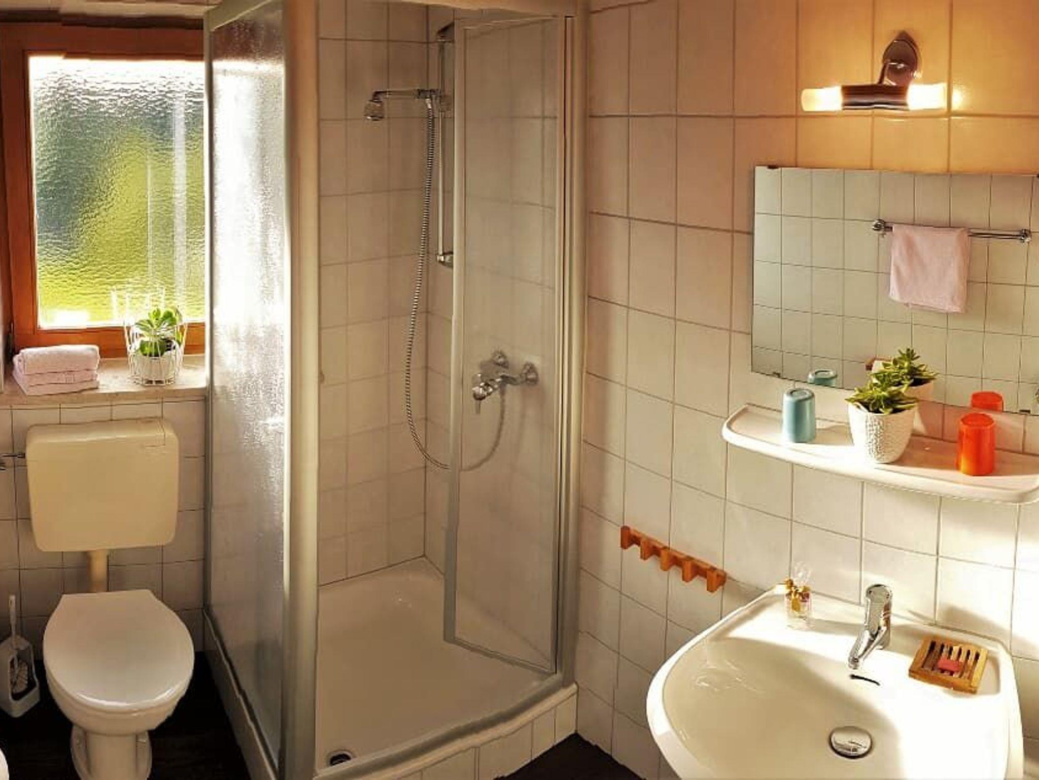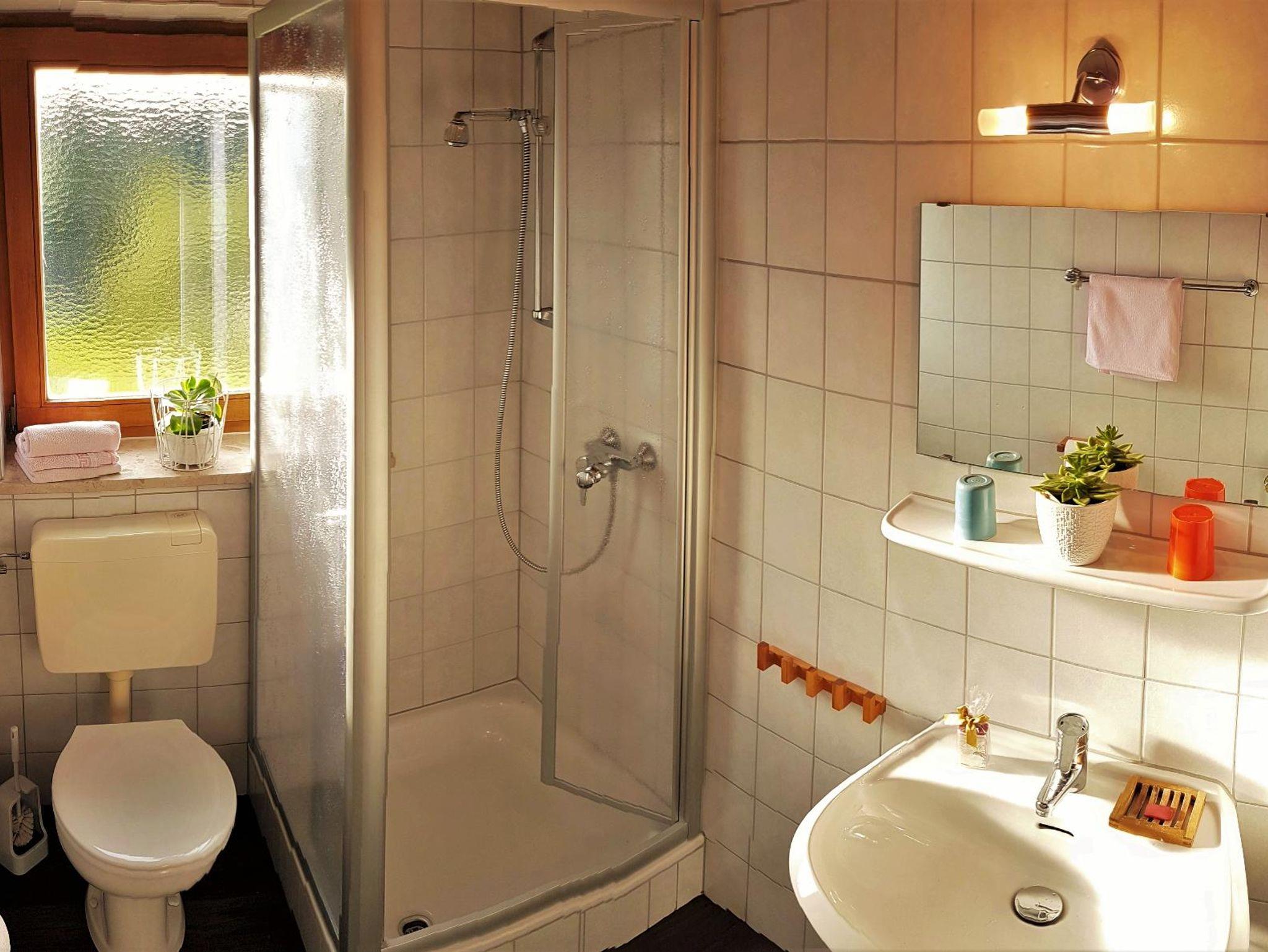 Das Badezimmer mit Dusche/WC und Fön rundet das Gesamtbild ab.