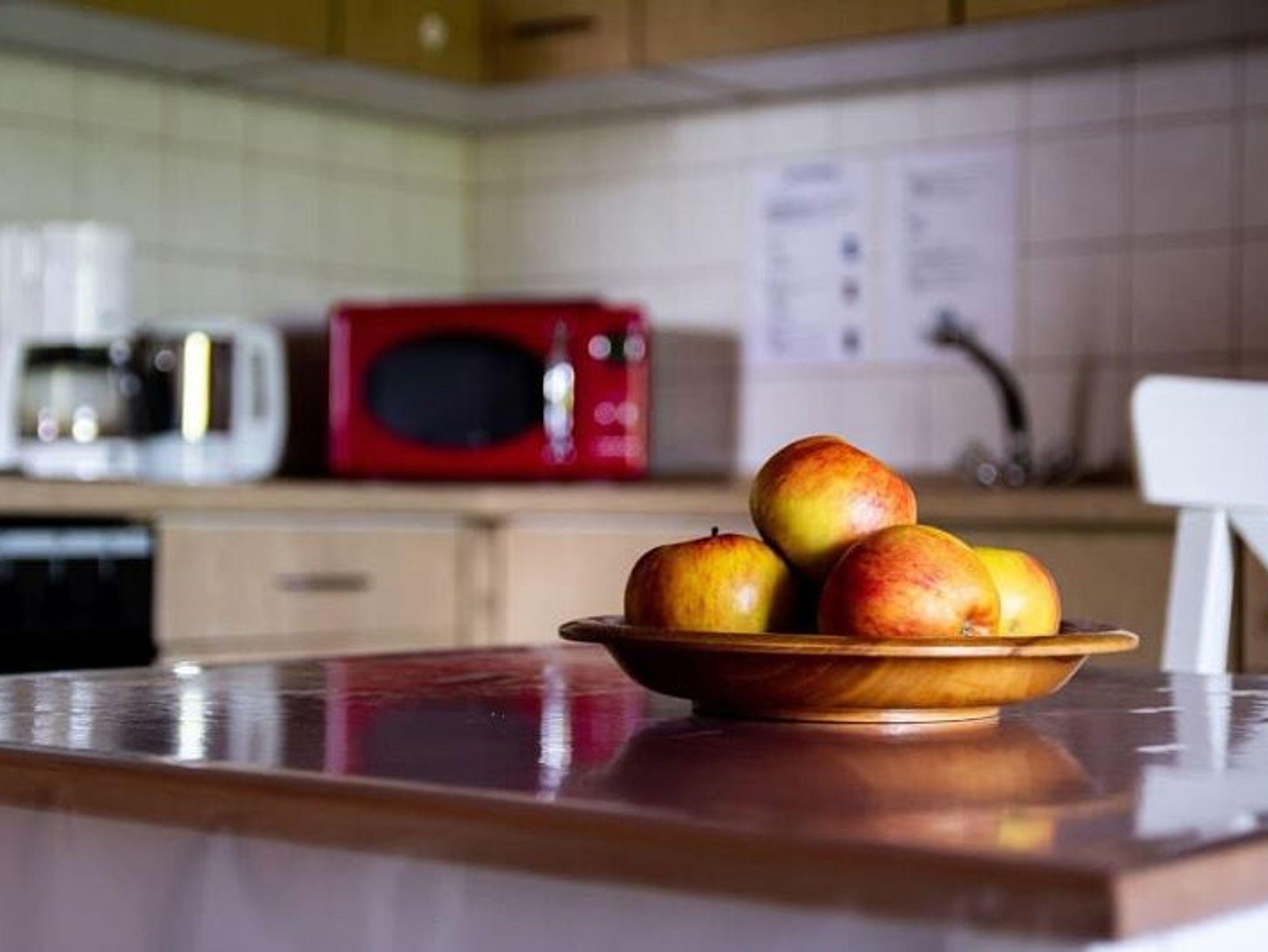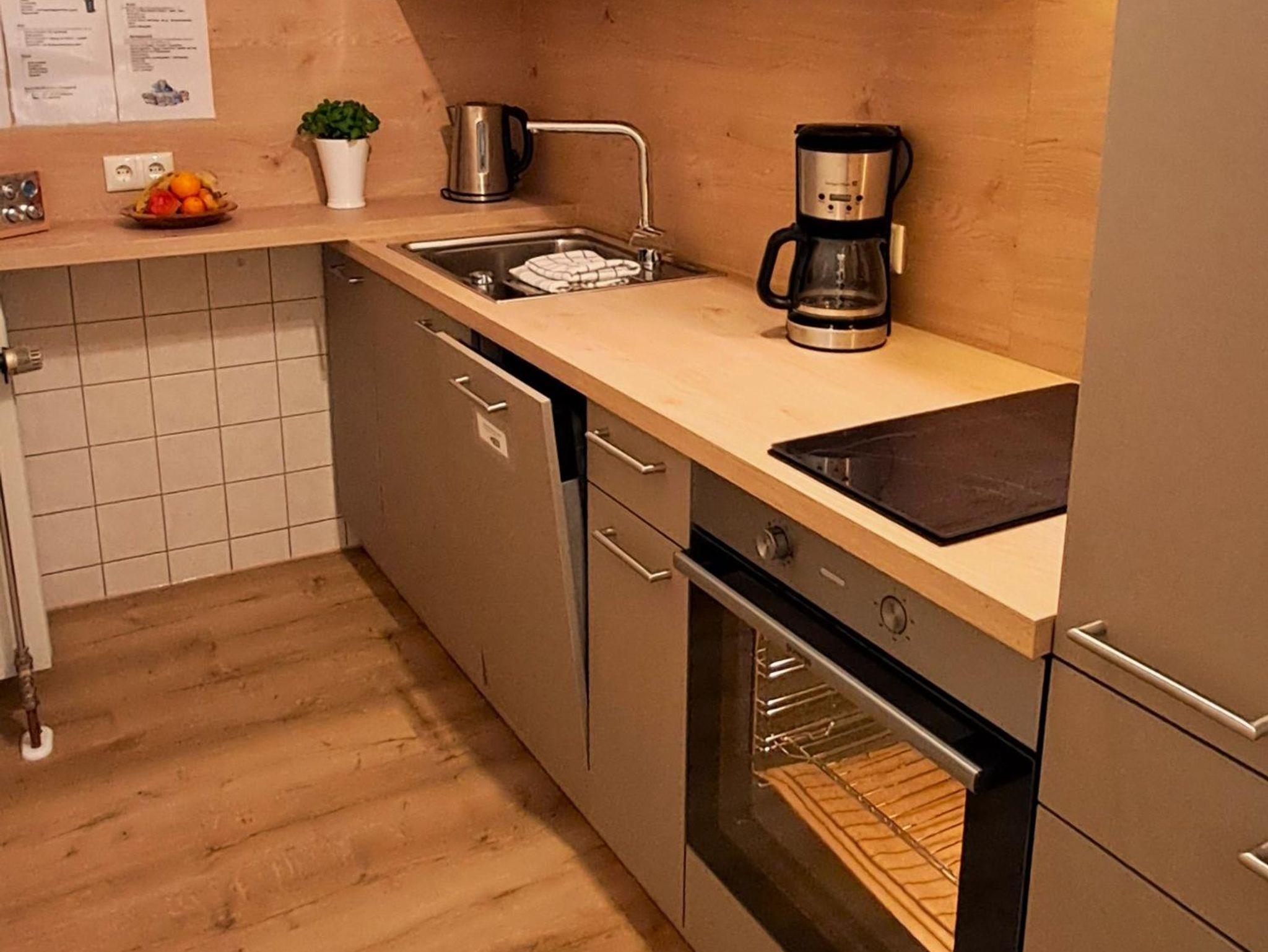 Die komplett ausgestattete Küche mit Kühlschrank, Herd, Backofen, Mikrowelle, Dunstabzug, Radio, Wasserkocher, Toaster und Kaffeemaschine lässt keine Wünsche offen.