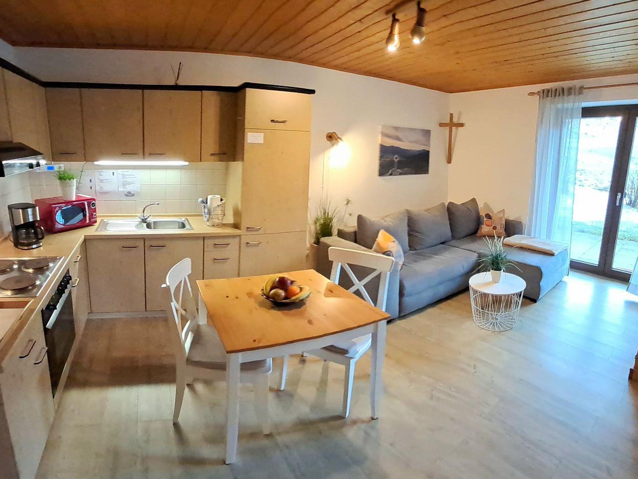 Unsere neu renovierte Ferienwohnung Lohberger Steindl mit bestuhlter Südterrasse und ca. 40 qm bietet Platz für 2 Personen.