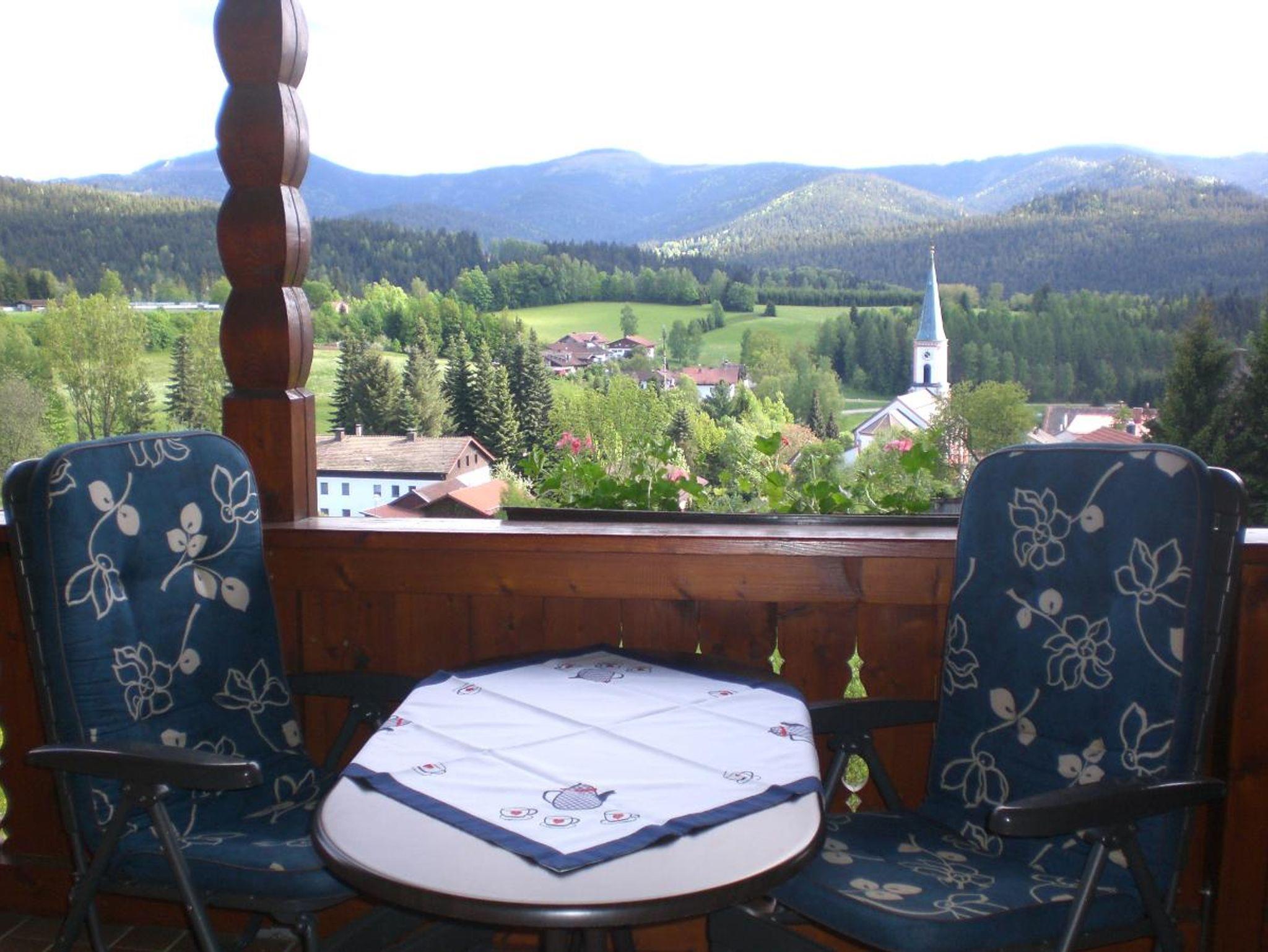 Komfortable und gemütliche Ferienwohnung für 2 - 4 Personen mit herrlicher Aussicht auf die Bayerwaldberge. Die Ferienwohnung ist ausgestattet mit einem Wohnzimmer, einer Küche (inkl. E-Herd, Kühlschrank mit
