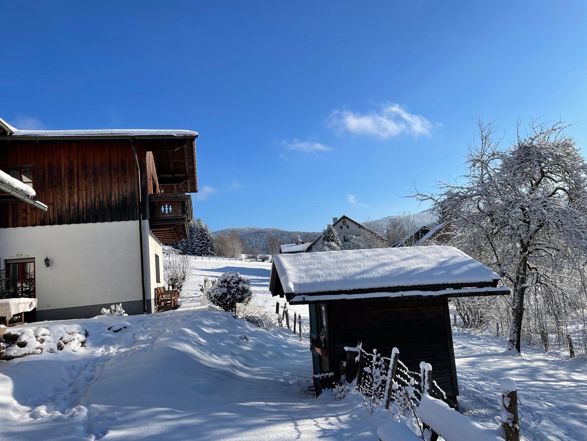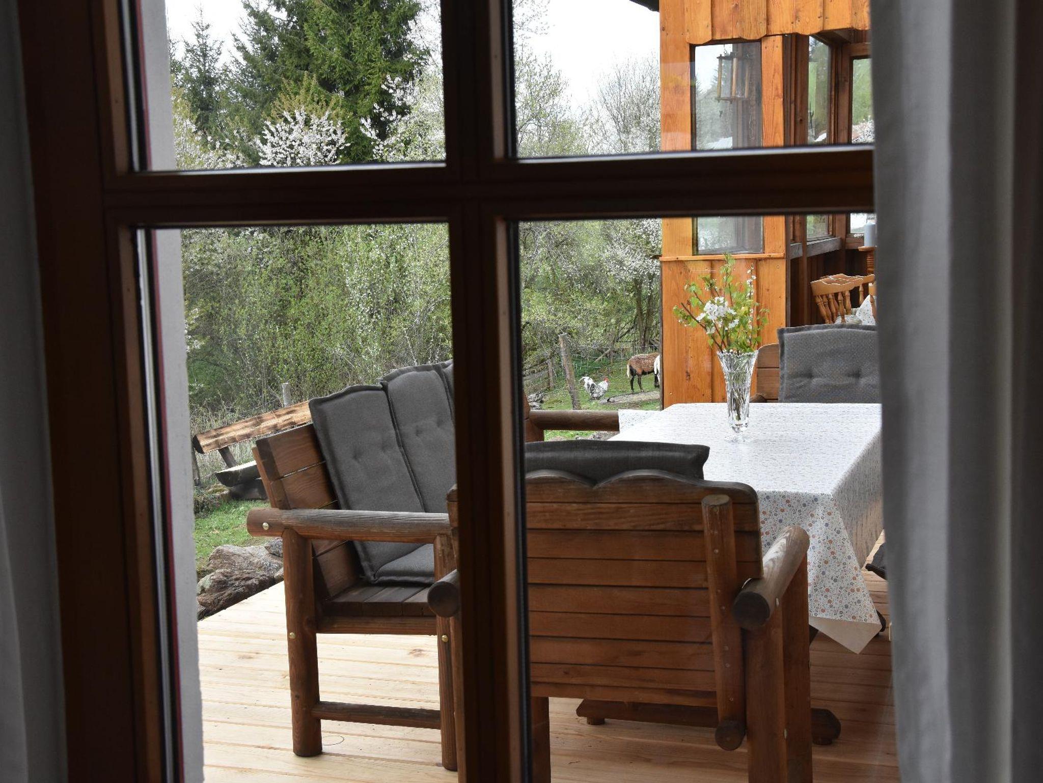 Rund um das Ferienhaus erwartet Sie ein weitläufiger Garten mit Terrasse und Freisitz – ideal zum Sonnen, Grillen oder einfach nur die frische Waldluft genießen. Die Wiesen mit unseren Schafen und Hühnern sorgen für echte Landhausatmosphäre. Abschließbare Abstellräume für Fahrräder, Ski etc. Kostenlose Parkplätze finden Sie vor dem Haus, eine Garage kann gegen Gebühr gemietet werden.