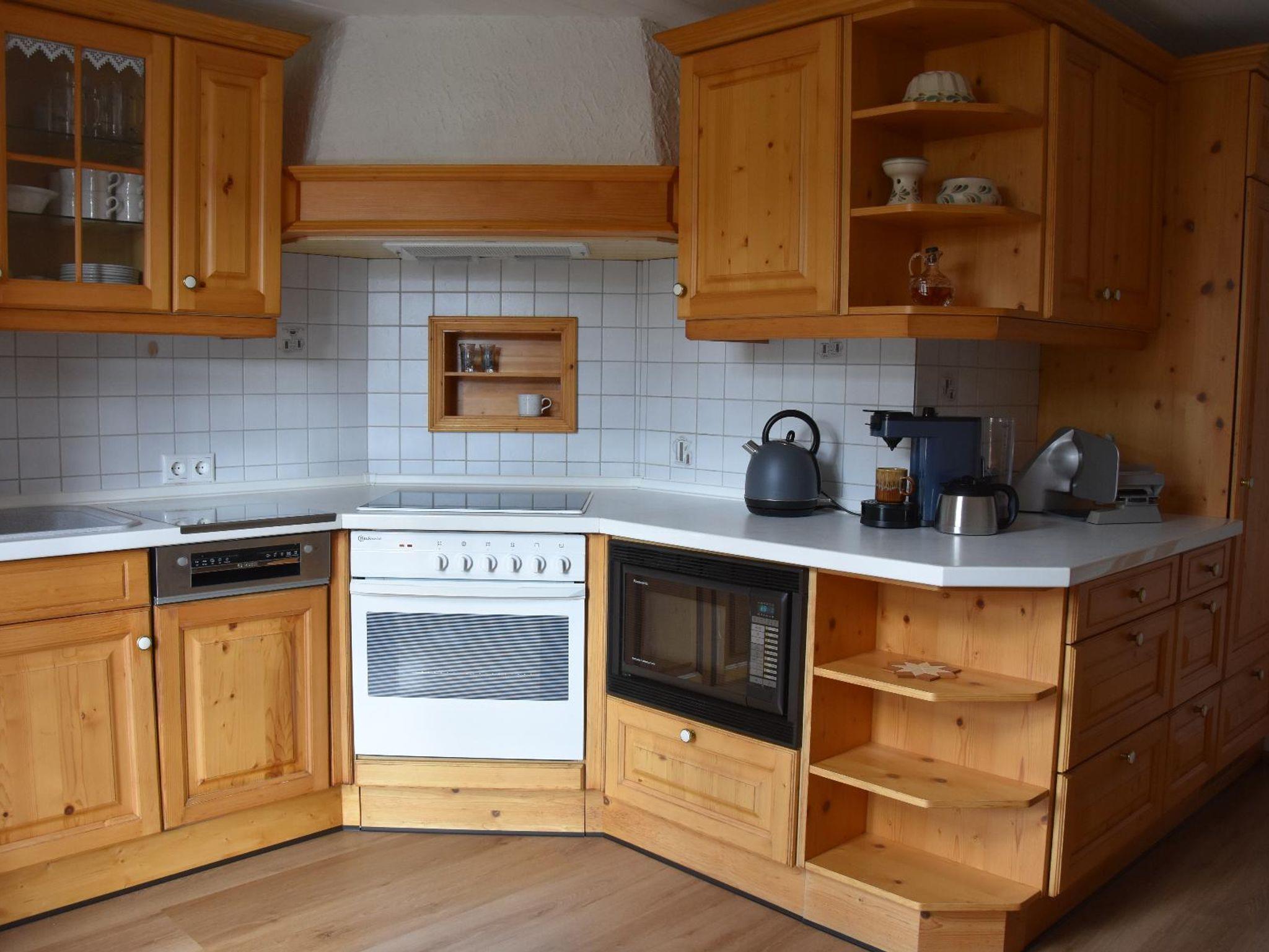 In der voll ausgestatteten Küche mit Cerankochfeld, Backofen & Mikrowelle, Spülmaschine & Kühlschrank mit Gefrierfach, Kaffeemaschine, Toaster, Wasserkocher, Eierkocher, Brotschneidemaschine und Sodastream macht Kochen Spaß.