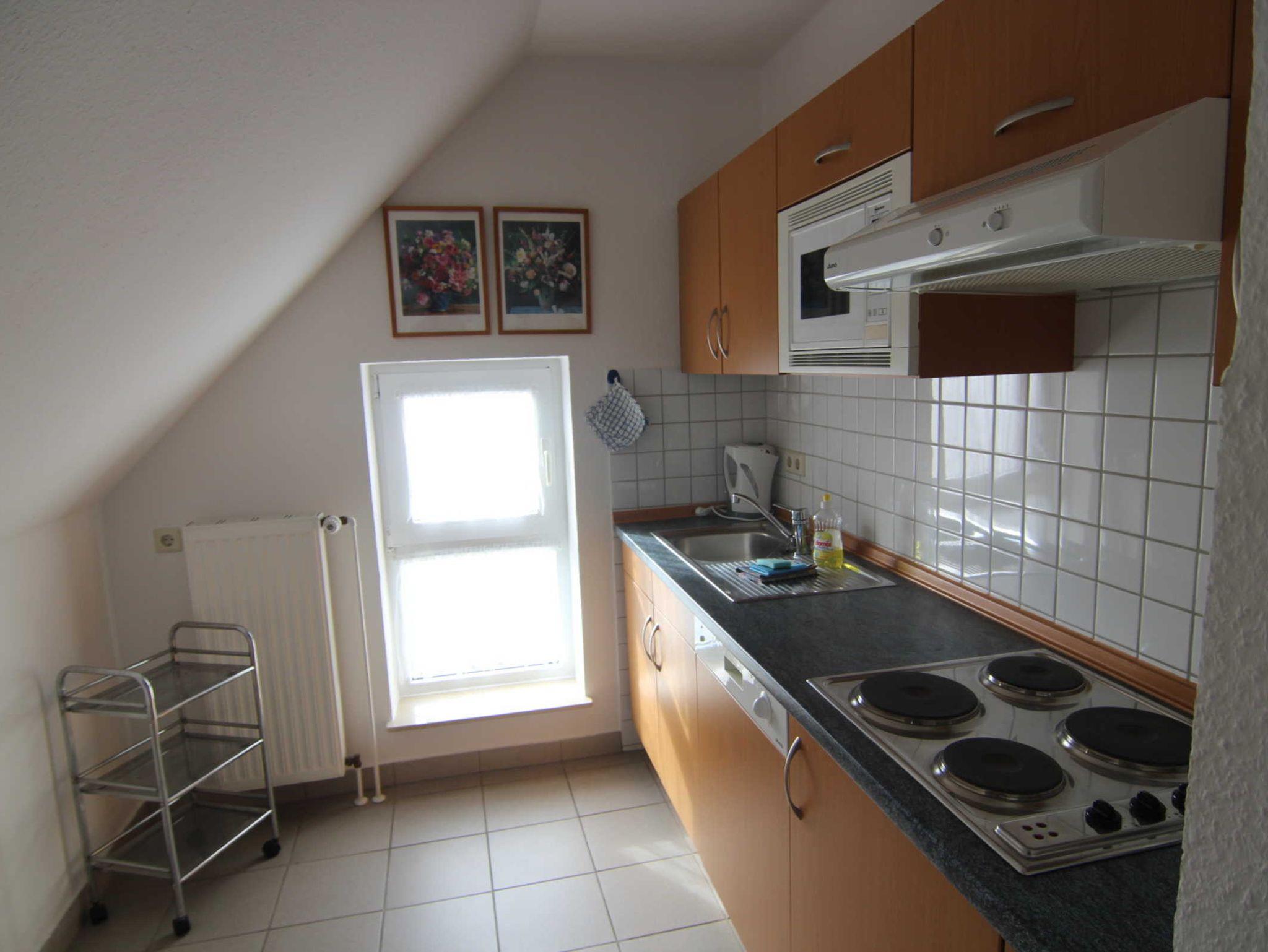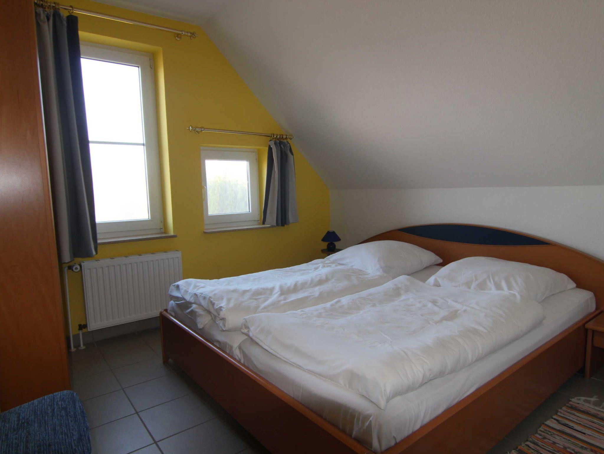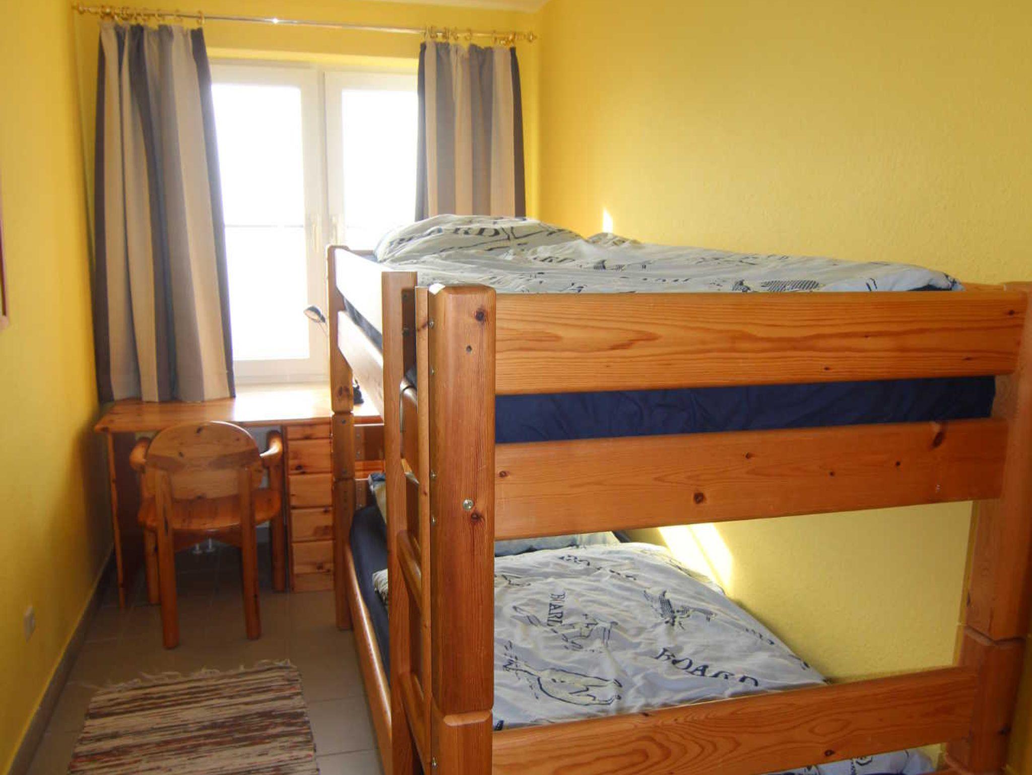 Die 65 Quadratmeter grosse Ferienwohnung ist ausgestattet mit 3 Schlafzimmern (insgesamt 6 Betten), einer offenen Küche und einem Bad mit Badewanne.
