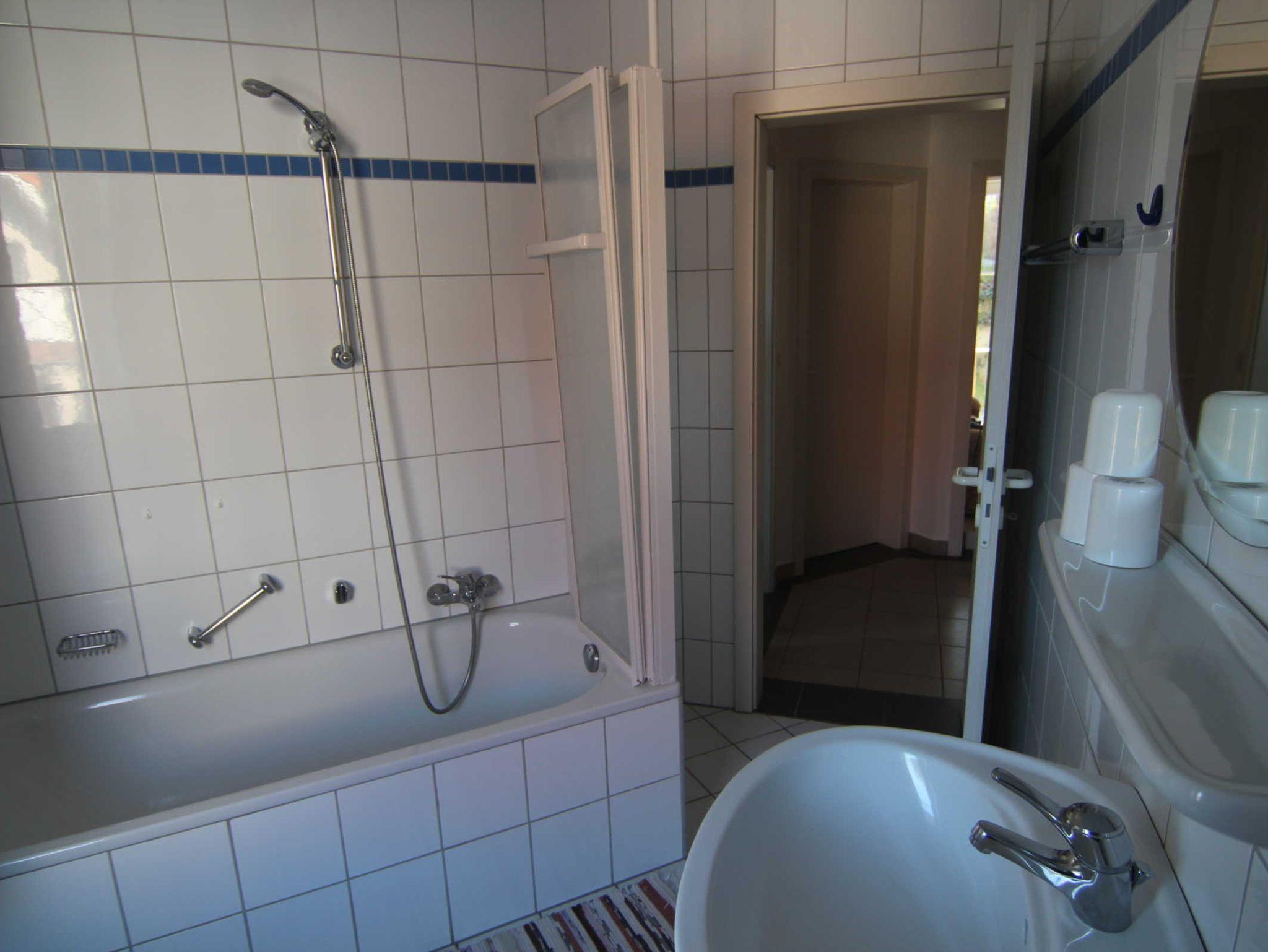 Die 52 Quadratmeter grosse Ferienwohnung ist ausgestattet mit 2 Schlafzimmern (insgesamt 4 Betten), einer offenen Küche und einem Bad mit Badewanne.